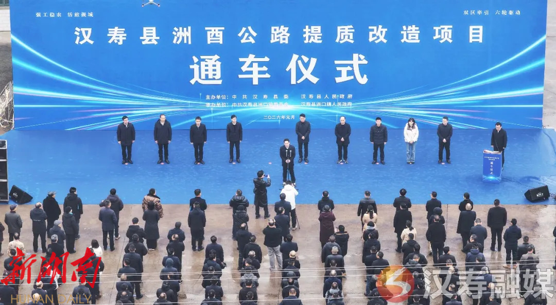 汉寿融媒1月4日讯(记者:邓志祥 李琪宇 李乐中)“以前想都不敢想,我们农民的门前会通柏油路!”1月4日,在汉寿县洲酉公路提质改造项目通车仪式现场,来自洲口镇华光村的农民代表陈祖宏一番质朴发言,道出近20万群众的共同心声。当天的通车仪式上,县委书记周功表,县委副书记、县人民政府县长王时雨等领导出席仪式,与前来观礼的当地群众共同见证这一重要的民生时刻。