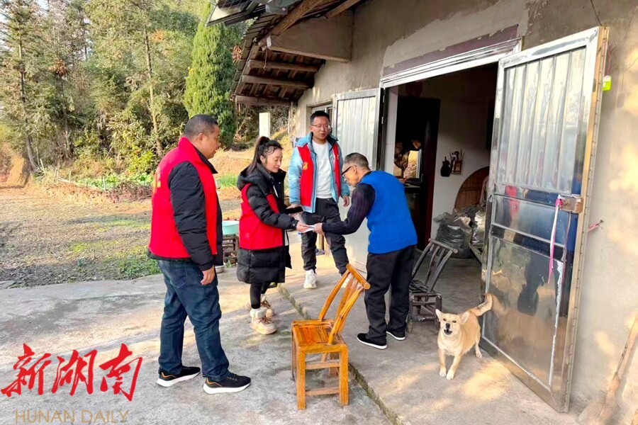 视外桃源客户端12月26日讯(通讯员:朱华)“伯伯,最近天气冷,您在屋里烤火,千万要记得开点窗通风,还要注意不要搞起火来哒,注意安全啦。”近日来,桃花源镇镇村干部、网格员和志愿者们化身“平安使者”,深入全镇村组,广泛开展了“敲门见面送平安”专项行动。