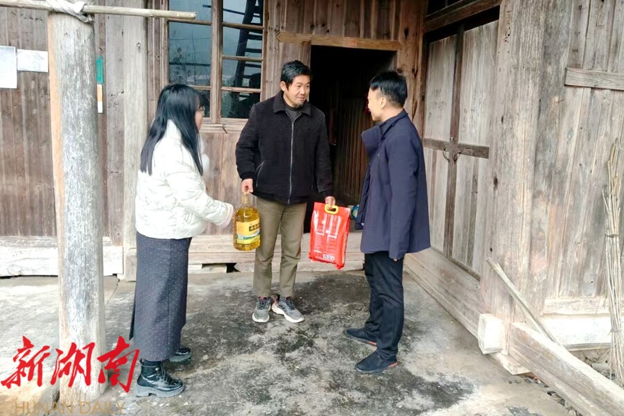 视外桃源客户端12月31日讯(通讯员:王碧秀)“天气冷了,您要多注意保暖,这些米和油是党委政府的一点心意,元旦快乐!”近日,西安镇党委书记、镇长带队,镇社会事务综合服务中心联合镇民政社工站工作人员,走进困难群众家中开展元旦节前慰问活动,为他们送上米、油等慰问物资和节日的真挚祝福。