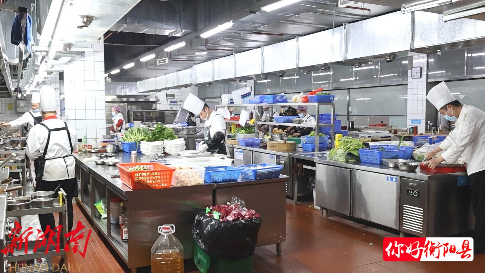 酒店主要接待大型宴会。在整洁的中央厨房里,大厨们正忙于烹饪一道道精美的佳肴,“本地特色菜+融合菜系”是这里的主打,湘西血粑鸭、宝塔豆腐、荔浦芋头、砂锅排骨、土头碗等一道道宴席菜既美观精致,又鲜美可口。所有食材均为精心挑选采购,宴会开始前现场制作,确保每一场宴会、每一位客人吃到的都是最新鲜、风味最佳的菜品。