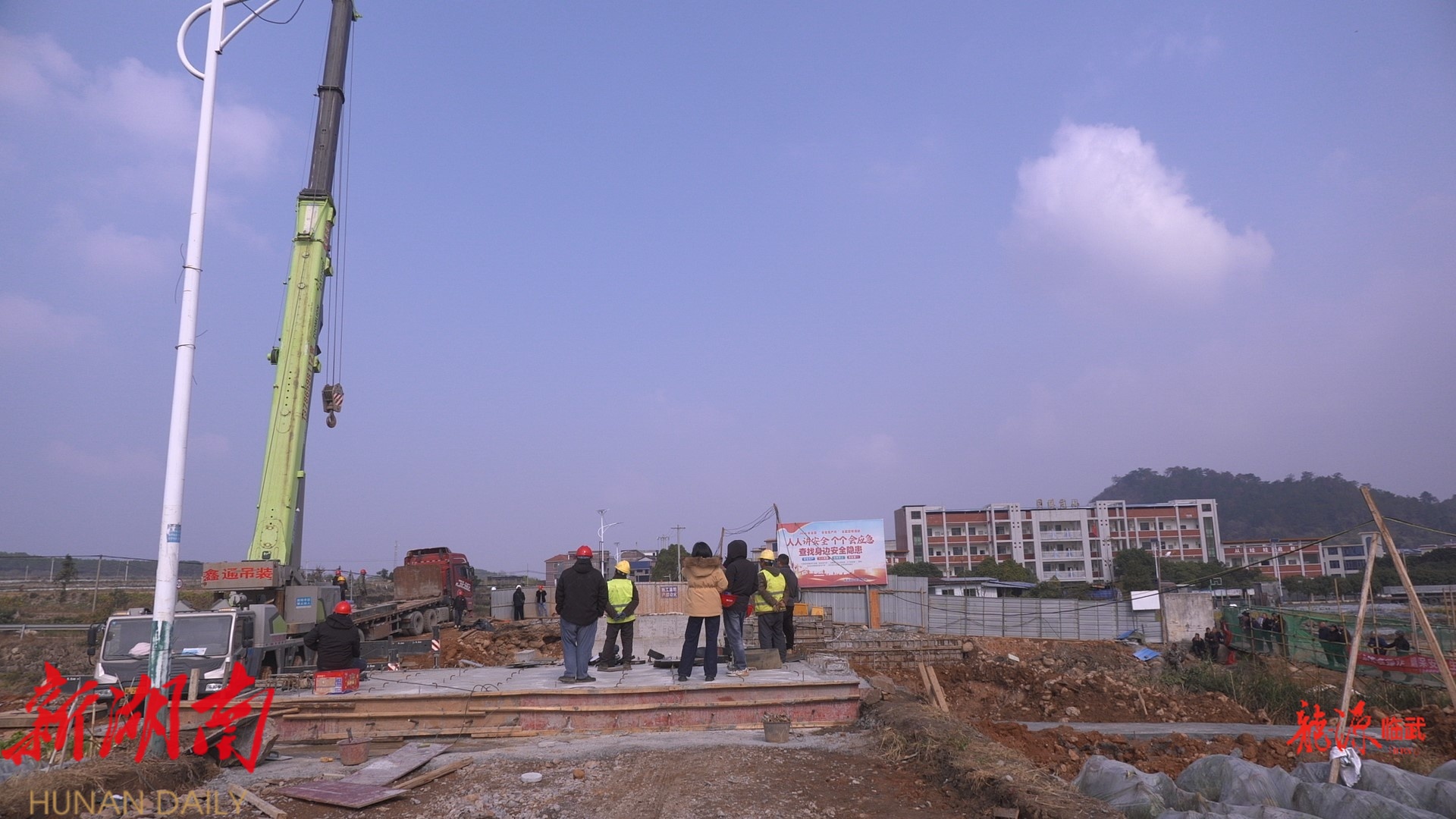 在舜峰镇贝溪村Y927线坝江桥拆除重建工程项目现场,大型起重机精准吊运桥梁预制梁,施工人员密切配合进行安装调试,现场一派紧张有序的忙碌景象。与坝江桥项目同步推进的,还有琶溪桥、老屋场桥2座农村公路危桥重建项目,施工人员正朝着春节前全面通车的目标全力冲刺。