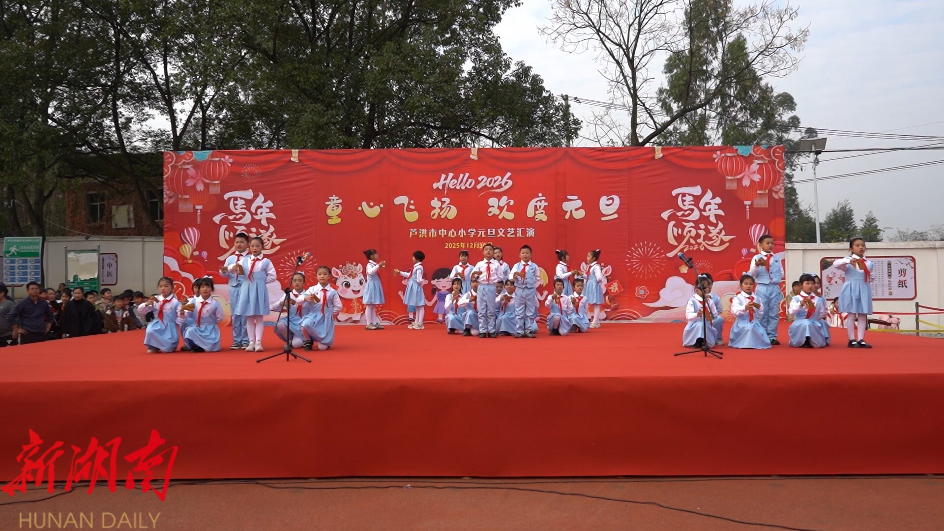 新湖南客户端12月31日讯(通讯员 邓志宇 罗丽娜 蒋忠艳)12月30日,东安县芦洪市中心小学举行“童心飞扬 欢度元旦”文艺汇演。