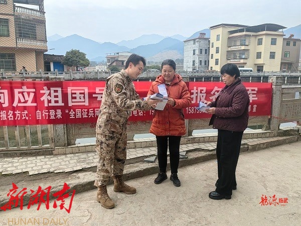 龙源临武客户端1月7日讯(通讯员 郑飞鹰)为切实做好2026年上半年征兵工作,近日,临武县西瑶乡组织开展征兵宣传活动,将征兵政策送到群众身边,让强军号召萦绕青年耳畔。