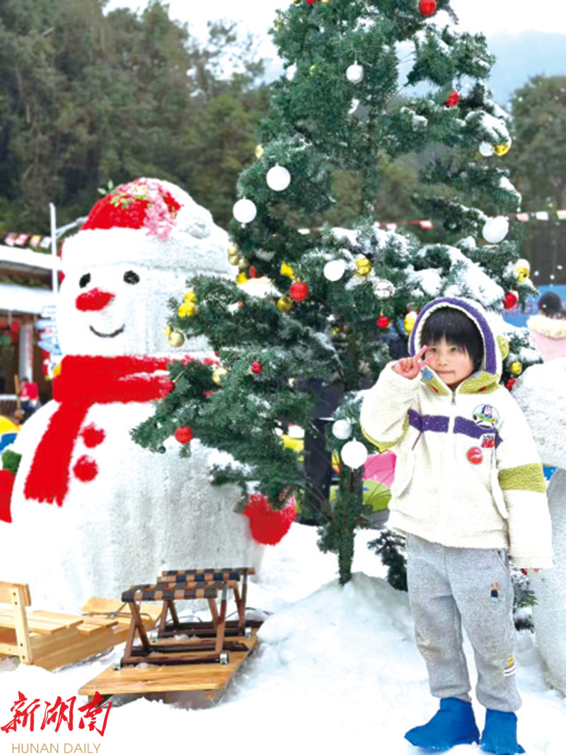 孩童在石牛寨戏雪乐园开心留影。