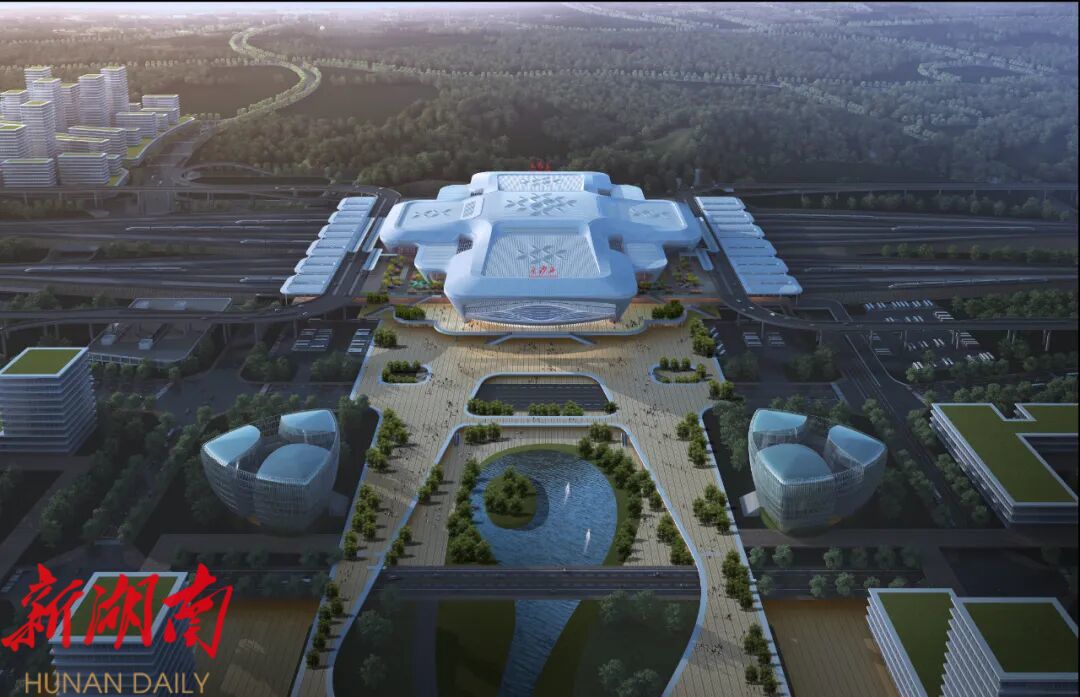 高铁长沙西站设计效果图。