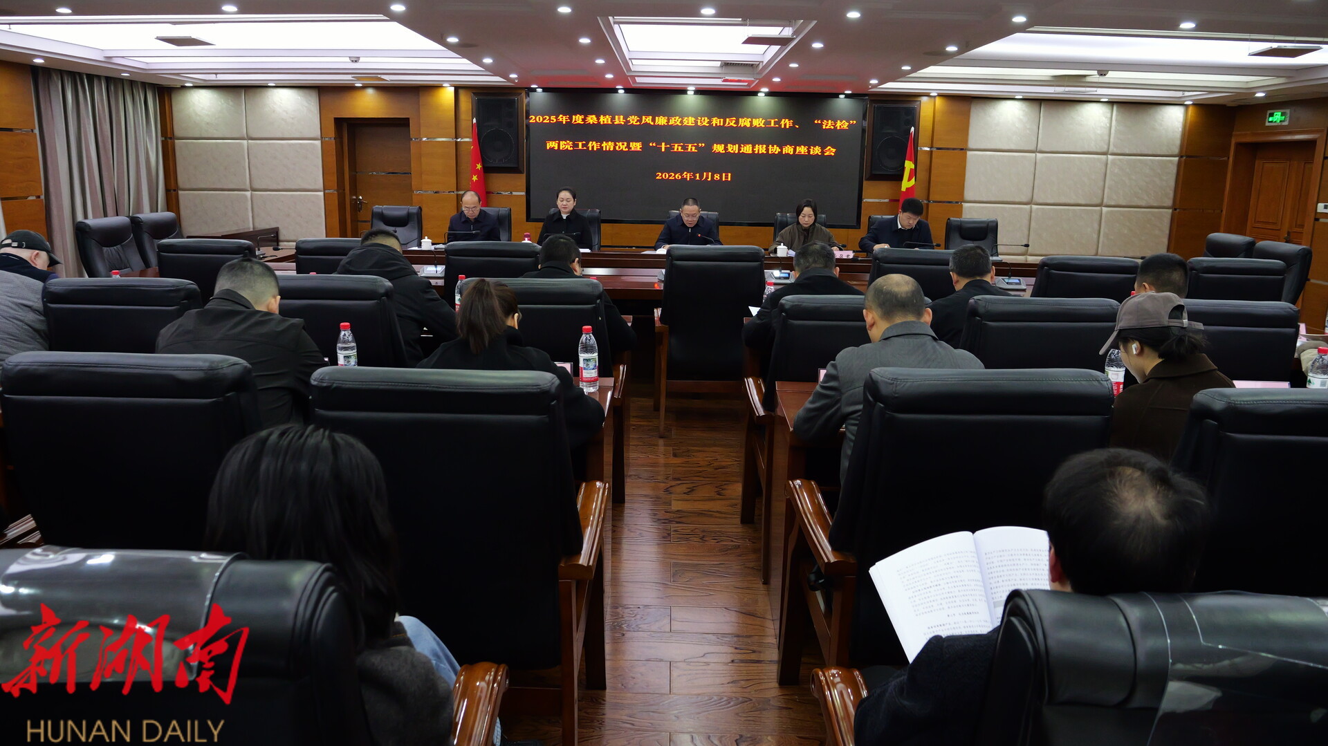 湖南日报·新湖南客户端1月8日讯(通讯员 张芬)1月8日,2025年度桑植县党风廉政建设和反腐败工作、“法检”两院工作情况暨“十五五”规划通报协商座谈会召开。县委常委、县纪委书记、县监委主任张交通出席会议并讲话,县委常委、统战部部长龚召君主持会议,副县长全洁琼,县人民法院院长刘利利,县人民检察院检察长丁光辉参加会议。