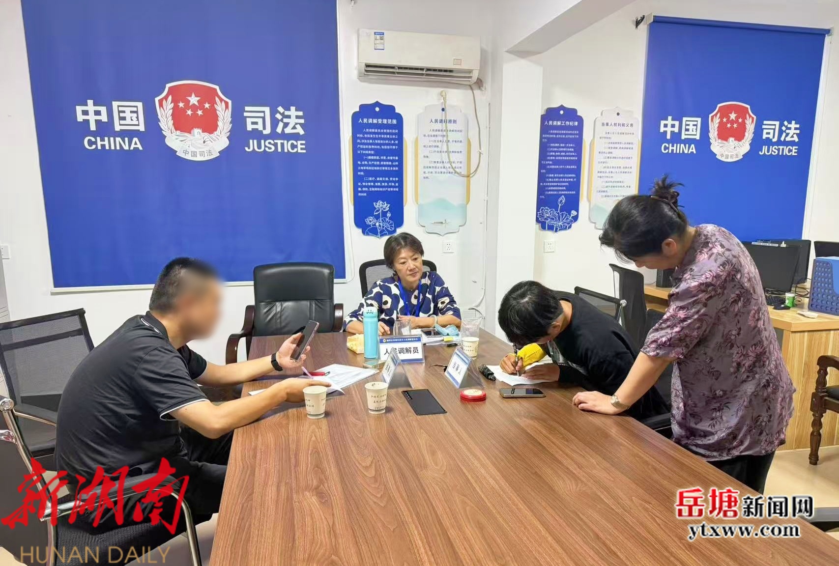 调解队伍是解纷核心力量。岳塘区着力打造“专职+兼职+群众”三位一体调解体系,构筑调解“新格局”,让调解力量扎根基层,形成“专业人办专业事、身边人解身边忧”的良好局面。目前,全区共有各类人民调解组织114个,实现镇(街道)、村(社区)全覆盖,现有人民调解员738人,其中区联调委聘有专职人民调解员20人。区司法局择优派驻专职调解员入驻全区派出所、快警站,实现全覆盖。驻宝塔派出所专职调解员唐钊表示,常态化驻守能第一时间介入纠纷,提升处置效率。