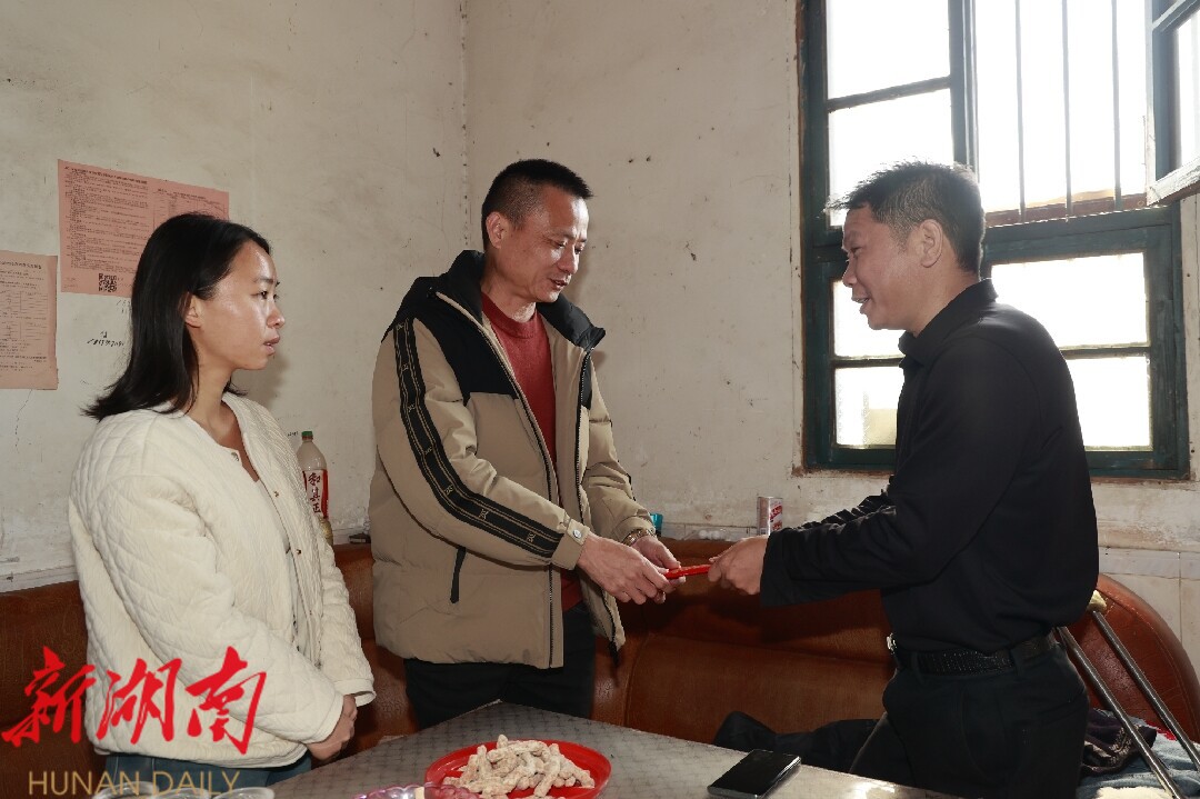 新桂阳1月9日讯(记者 陈勇 何禹军)湖南汇宝鑫环保科技有限公司总经理黄金顺是福建厦门人,他从1995年来到郴州创业,后来又在郴州安家落户。30年来,他一直坚持在公益的道路上长跑,多次捐资助学、助残,帮助他人早已成为了生活中的一种习惯,无私善举也温暖了无数人的心。1月8日,黄金顺驱车70多公里,从郴州赶到我县四里镇阳家村,帮扶一位身残志坚的残疾人。