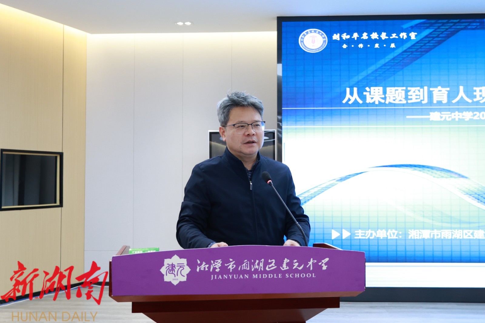 雨湖融媒1月8日讯 (通讯员 黄依炜 姜瑾)教育科研是赋能 学校 教育高质量发展的核心引擎,亦是助力教师专业成长的关键路径。 1月7日上午 ,建元中学举办2026年课题成果转化专项指导培训,特邀湖南科技大学教育资源与智能教育研究院院长王伟清教授莅临赋能,学校党支部书记、校长刘和平 , 副书记梁小松,教学副校长谢欢,工会主席樊波,德育副校长孙鑫,总务副校长冯泽慧出席活动 。 全校14个 市级以上 课题组 参研教师 及有志于课题研究的教师齐聚一堂,共探科研转化新路径,彰显学校“ 智慧育人 、以研促教”的办学初心。本次活动由 学校 教科研中心黄依炜 老师 主持。
