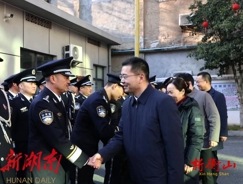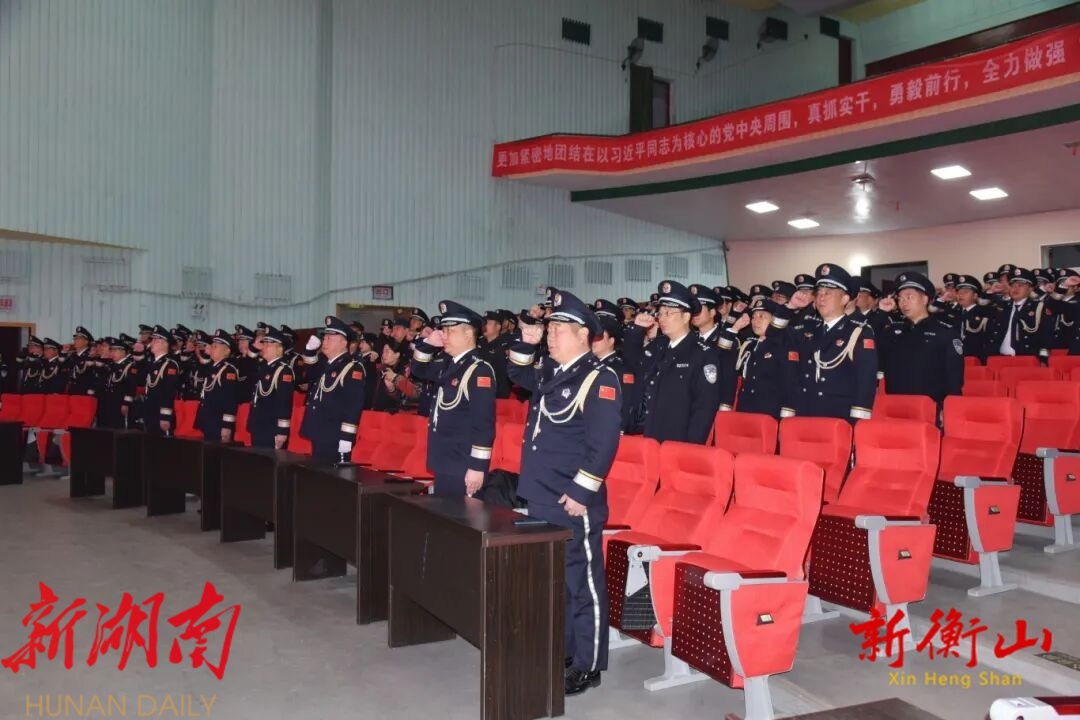 陈瑞来在升警旗仪式上代表县委、县政府向全县公安民辅警、离退休老干警致以节日的祝贺,向一直以来关心和支持公安工作的广大警属表示衷心的感谢。他指出,全县公安机关紧紧围绕县委、县政府中心工作,锚定“平安衡山”“法治衡山”建设目标,以守护平安为己任,以服务发展为导向,忠诚履职、奋勇拼搏,交出了一份让县委、县政府放心、让群众满意的亮眼成绩单。