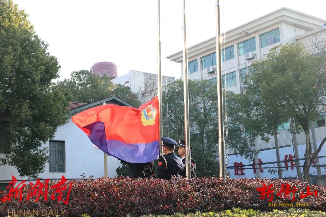 上午8:50,衡山县公安局在局前坪隆重举行升警旗仪式。旗手警容严整,精神抖擞,迈着整齐的步伐,护送警旗走向升旗台。伴随着《人民公安向前进》的雄壮旋律,中国人民警察警旗冉冉升起、随风飘扬。全体人员庄严肃穆,向警旗表达了最崇高的敬意。