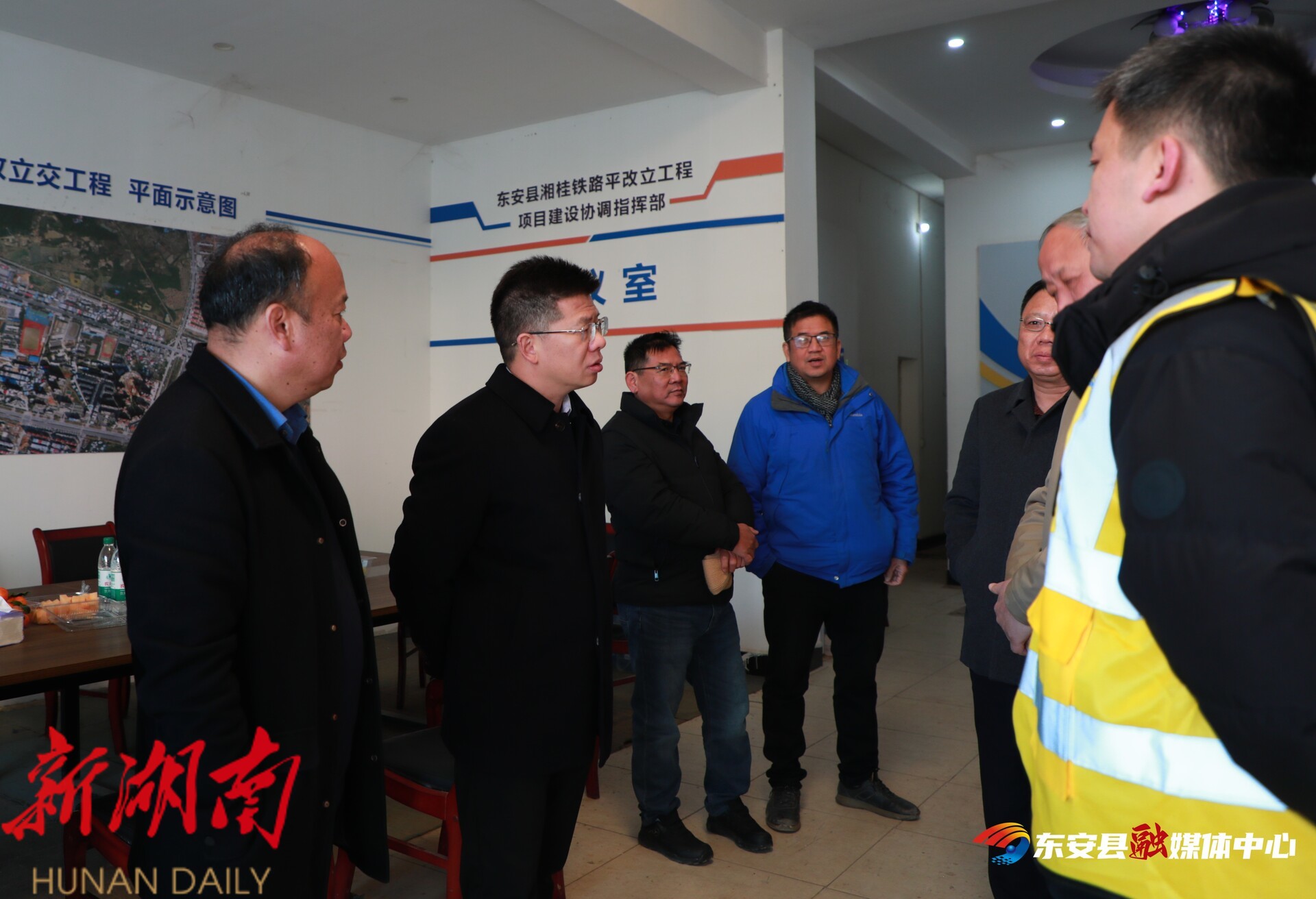 在湘桂铁路平改立工程施工现场,蒋华详细察看工程进展,与项目负责人深入交流,仔细询问项目建设中遇到的困难和问题。蒋华强调,要坚决压实安全生产主体责任,进一步优化施工组织方案,在严格保障工程质量和施工安全的前提下,紧盯目标任务与时间节点,倒排工期、挂图作战,全力推动项目早日建成投用,切实改善群众出行条件。