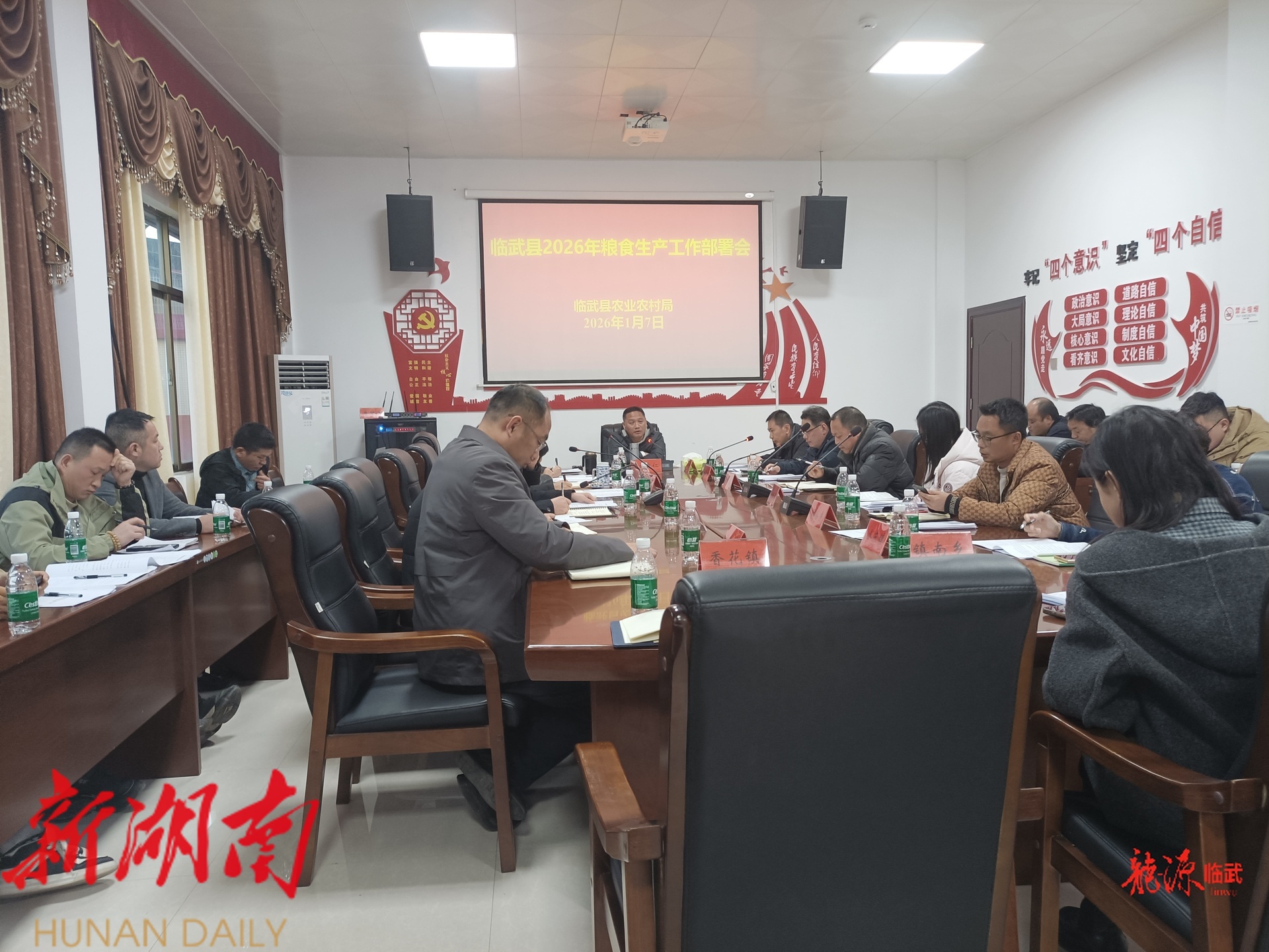 龙源临武客户端1月9日讯(通讯员 王毅勇)近日,临武县农业农村局召集相关责任单位、13个乡镇召开临武县2026年粮食生产工作部署会议,回顾总结2025年临武县粮食生产工作开展情况,并对《临武县2026年粮食生产示范片建设实施方案(送审稿)》等文件进行意见征求。