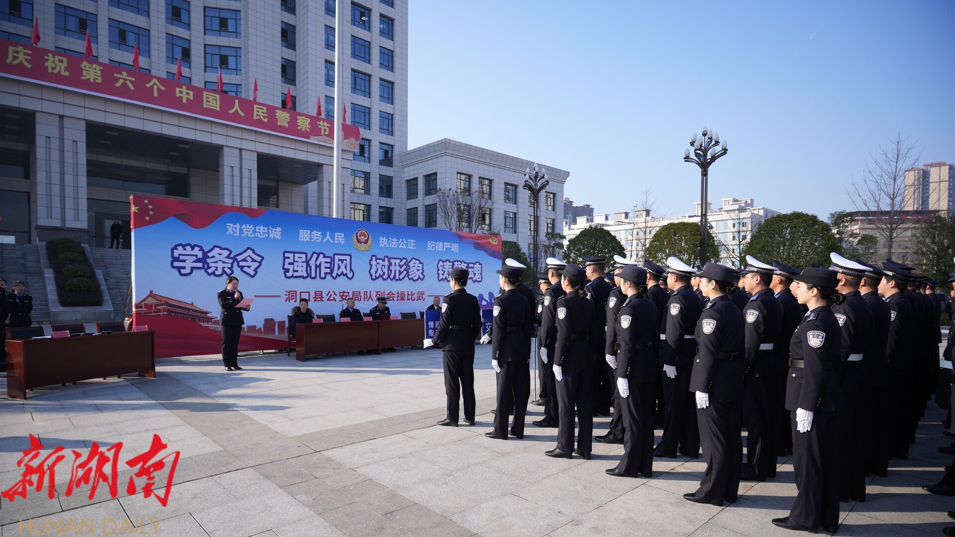 洞口融媒1月9日讯 (记者:林巍浩 肖皓静 通讯员:潘浩 尹方倩) 1 月 9 日, 县公安局举行队列会操比武, 10支晋级决赛的队伍同台竞技,以标准动作和昂扬风貌集中展示全体民辅警精神风貌、纪律素养和团队精神。 县公安局政委黄鹏出席。