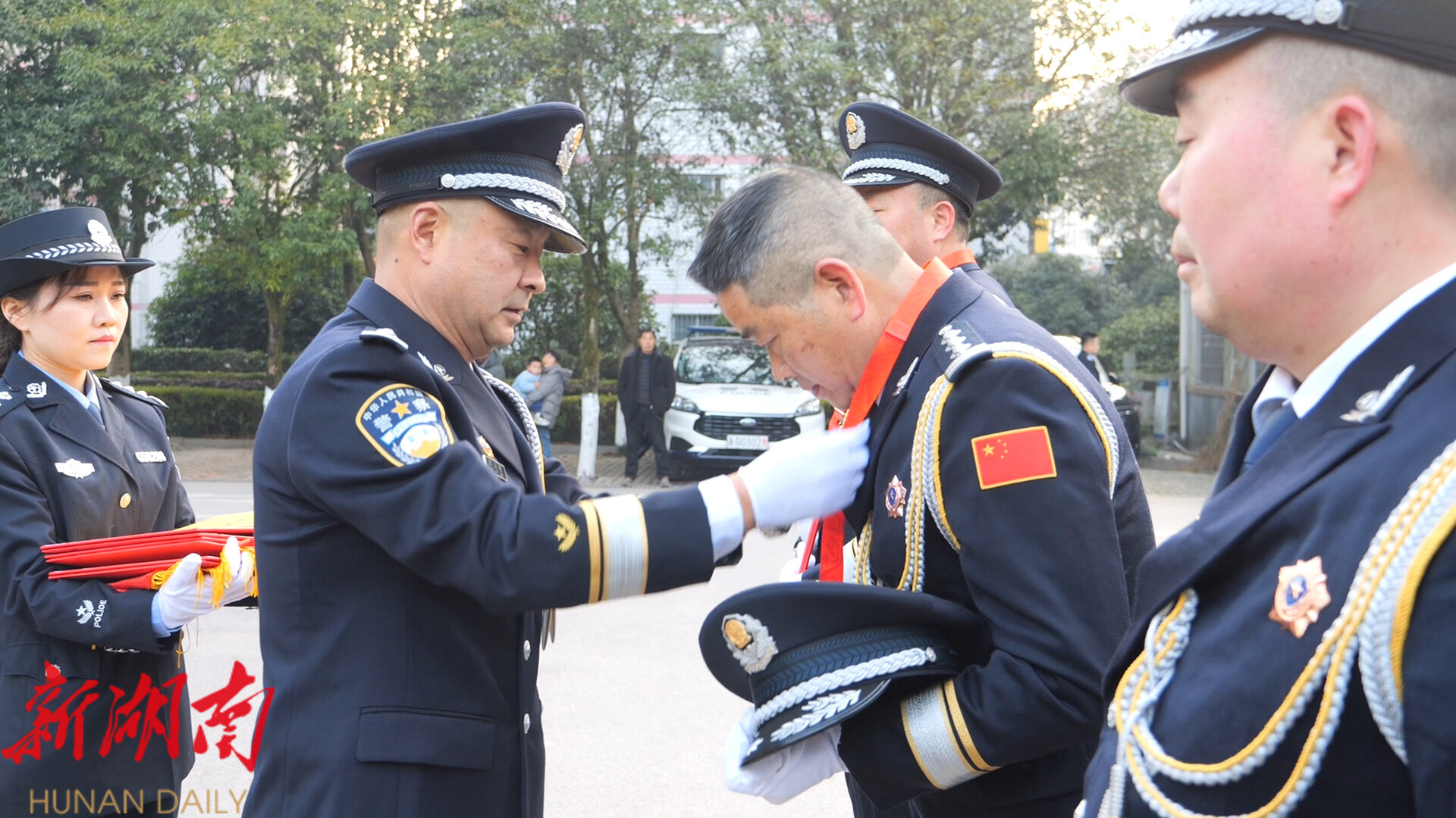 三十年风雨兼程、岁月沧桑,三十年忠诚如磐、初心不改。在从警三十周年荣誉章颁发仪式上,刘克敏现场为张宏礼、张道华等 16名从警三十周年的 公安民警颁授 “湖南公安荣誉章”。