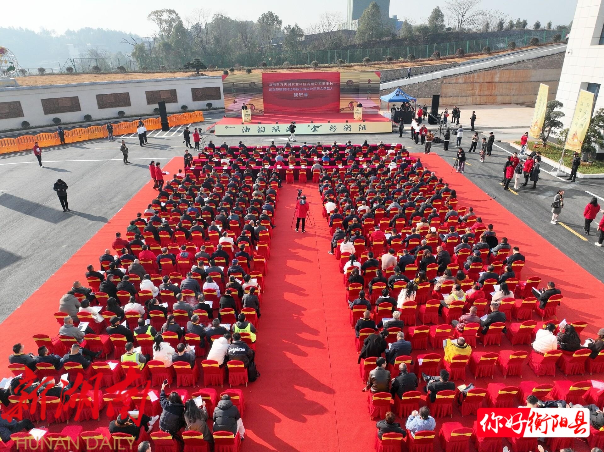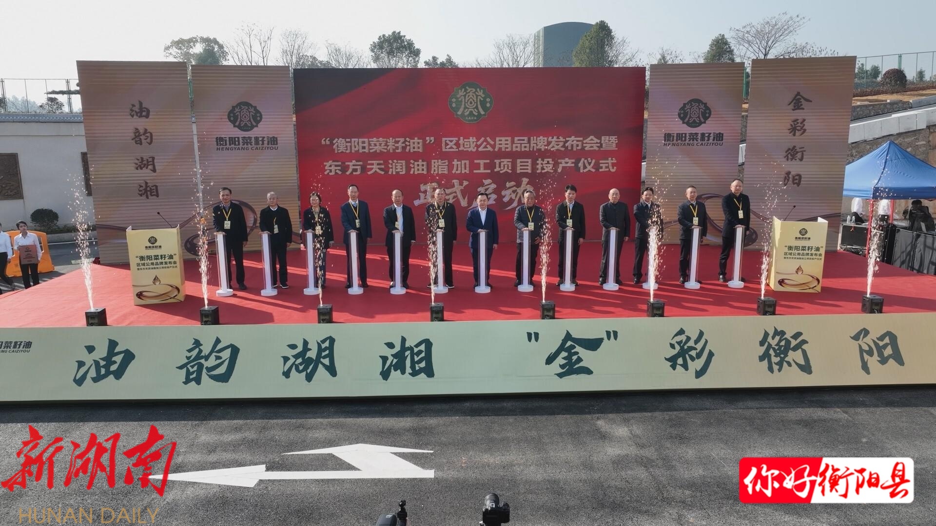 发布会上,刘仲华、唐浩明、曾建华、张建成、孙浩、刘诗真、杨峰及湖南东方天润农业科技有限公司董事长魏宏章共同触发启动器,标志着“衡阳菜籽油”区域公用品牌正式发布,东方天润油脂加工项目同步投产。