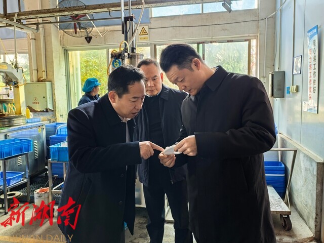 在湖南新农联肉食品有限公司,彭韬来到生猪屠宰车间,察看了解企业生产流程、员工日常工作及生猪入场检疫、肉品质检、安全生产管理等情况。他要求,企业要始终牢固树立质量安全第一的理念,全面落实食品安全主体责任,持续完善全链条管理体系,常态化开展风险排查与动态管控,将操作规范落实到每一个岗位和工序,切实为消费者提供更多优质、安全的肉制品。要持续加强品牌建设、大力拓展线上线下销售渠道,不断提升品牌影响力和市场竞争力。相关部门和属地乡镇要加强日常监督执法,严厉打击私屠滥宰等违法违规行为,坚决守牢食品安全生产防线。