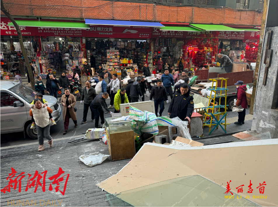 吉首市融媒体中心1月10日讯(通讯员 张楠)1月7-9日,吉首市镇溪街道联合市应急局、消防、市场局等多部门,开展关厢门市场出店经营及占用消防通道专项整治。