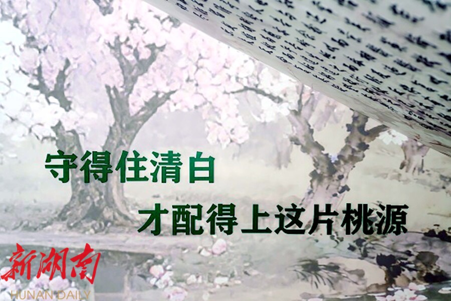 水墨桃花的淡雅底色上, “守得住清白,才配得上这片桃源”的醒目标语与陶渊明《归去来兮辞》的千古佳句相映成趣,农耕文化的质朴与廉洁理念的纯粹在此碰撞交融。不同于传统廉洁教育的严肃说教,走廊内的卡通漫画、情景图示生动鲜活,一幅幅直观易懂的画面,将抽象的纪律要求转化为具象的行为准则,让“不越雷池、不踩红线”的信念自然而然“入眼入心”,让清风正气成为桃源收费站最动人的底色。