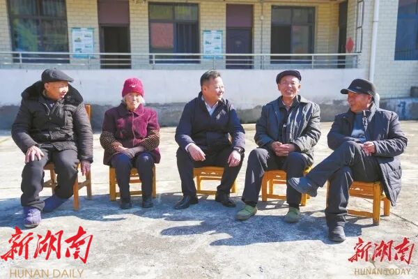 1月5日,张家界市永定区谢家垭乡敬老院,田卫(中)与老人们交谈,询问他们的身体与生活状况。向韬 摄(湖南图片库)