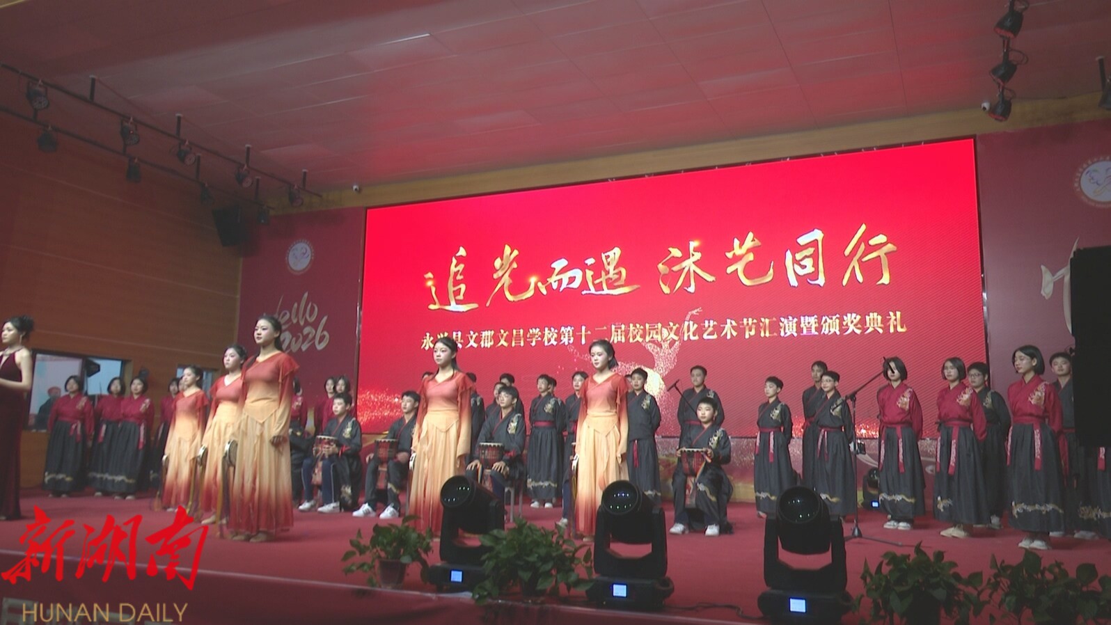 湖南日报·新湖南客户端1月13日讯(通讯员 郭志义 ) 近日,永兴文郡文昌学校以“追光而遇 沐艺同行”为主题的第十二届校园文化艺术节汇演暨颁奖仪式举行。师生齐聚一堂,共同见证这场集艺术展演与荣誉表彰于一体的校园文化盛会,感受青春与艺术碰撞的别样魅力。