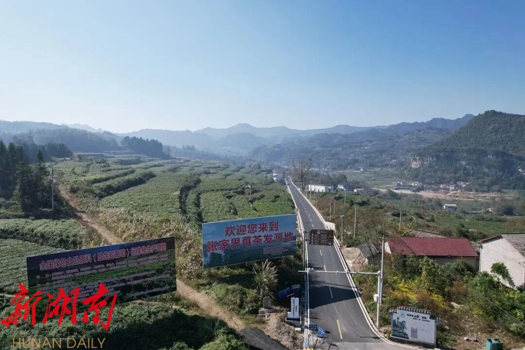 地处永定区西北部的罗塔坪乡,是“张家界莓茶发源地”,长寿村作为全国“一村一品”示范村,全村莓茶种植面积超过5000亩,是村民的主要收入来源。但在“十四五”之前,狭窄的道路成为制约产业发展的“拦路虎”,让村民守着“金叶子”却难摘“致富果”。