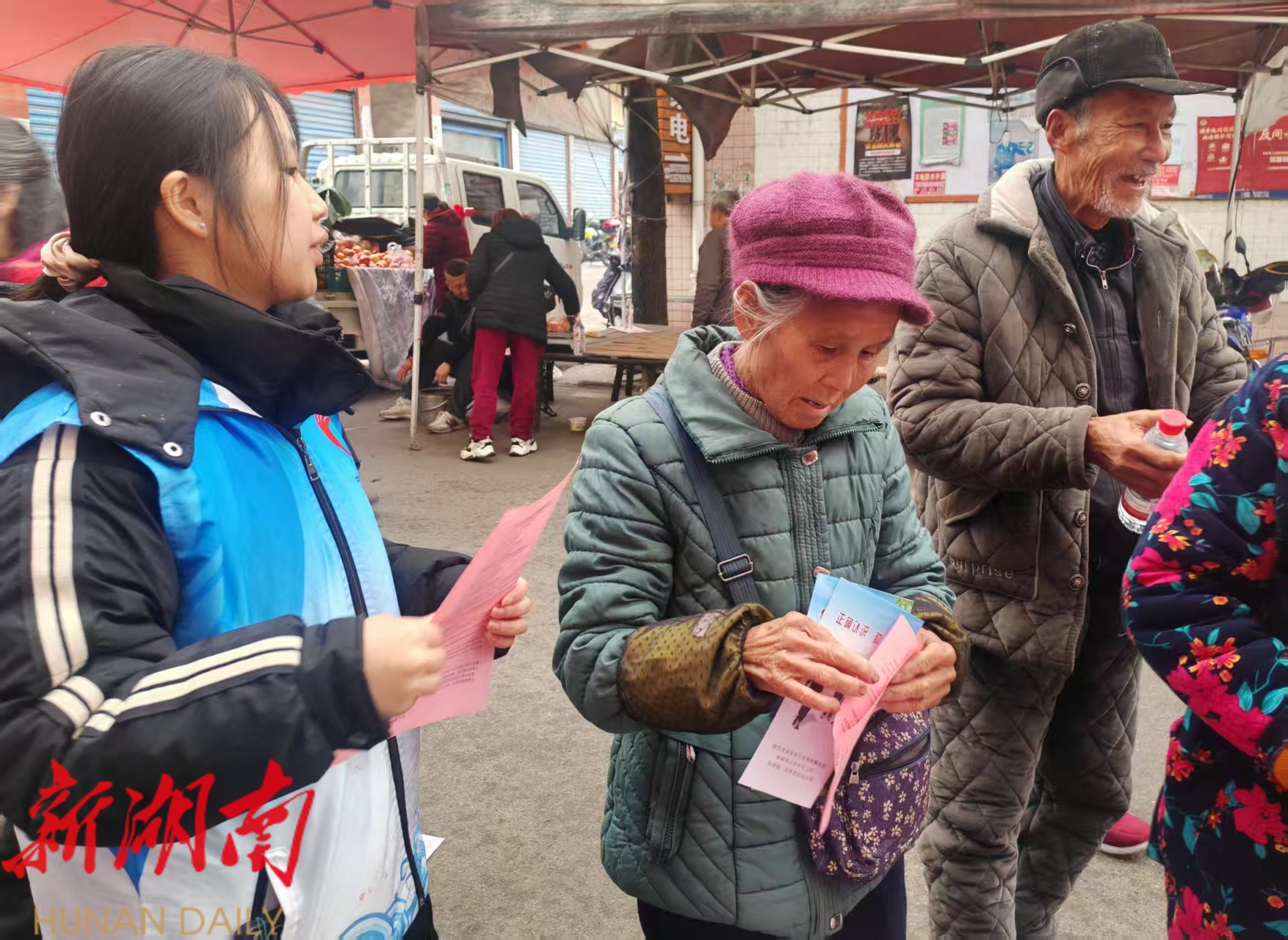 活动中,工作人员向赶集群众发放救助政策宣传资料及御寒物资,详细讲解救助政策,普及救助热线和求助渠道,号召环卫工人、商铺经营者等群体成为“民生探头”,积极构建 “群众发现—线索上报—快速响应”的高效社会联动救助网络,让更多人知晓救助、参与救助。