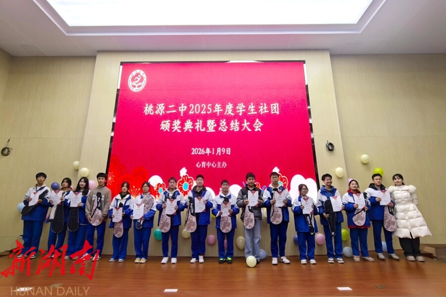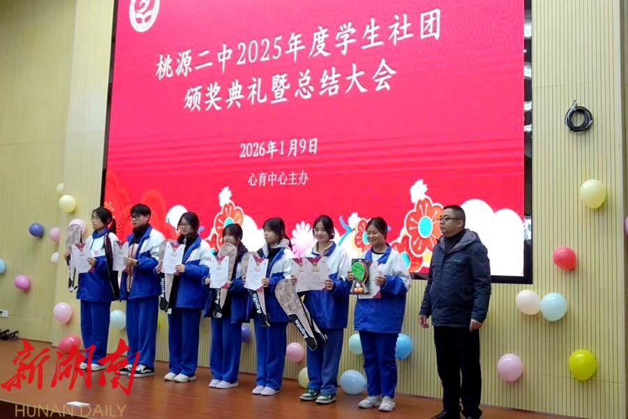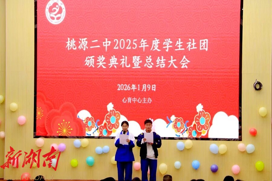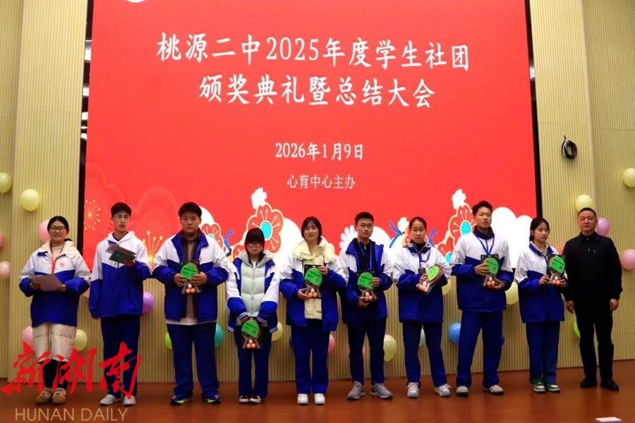 视外桃源客户端1月12日讯(通讯员:贺湘琦 朱湘钰)近日,桃源二中报告厅内灯光璀璨、掌声雷动,2025年度学生社团颁奖典礼暨总结大会在此举行。全体社团成员齐聚一堂,共同回顾社团年度成果,展望未来发展。