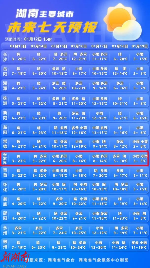 湖南最新天气预报