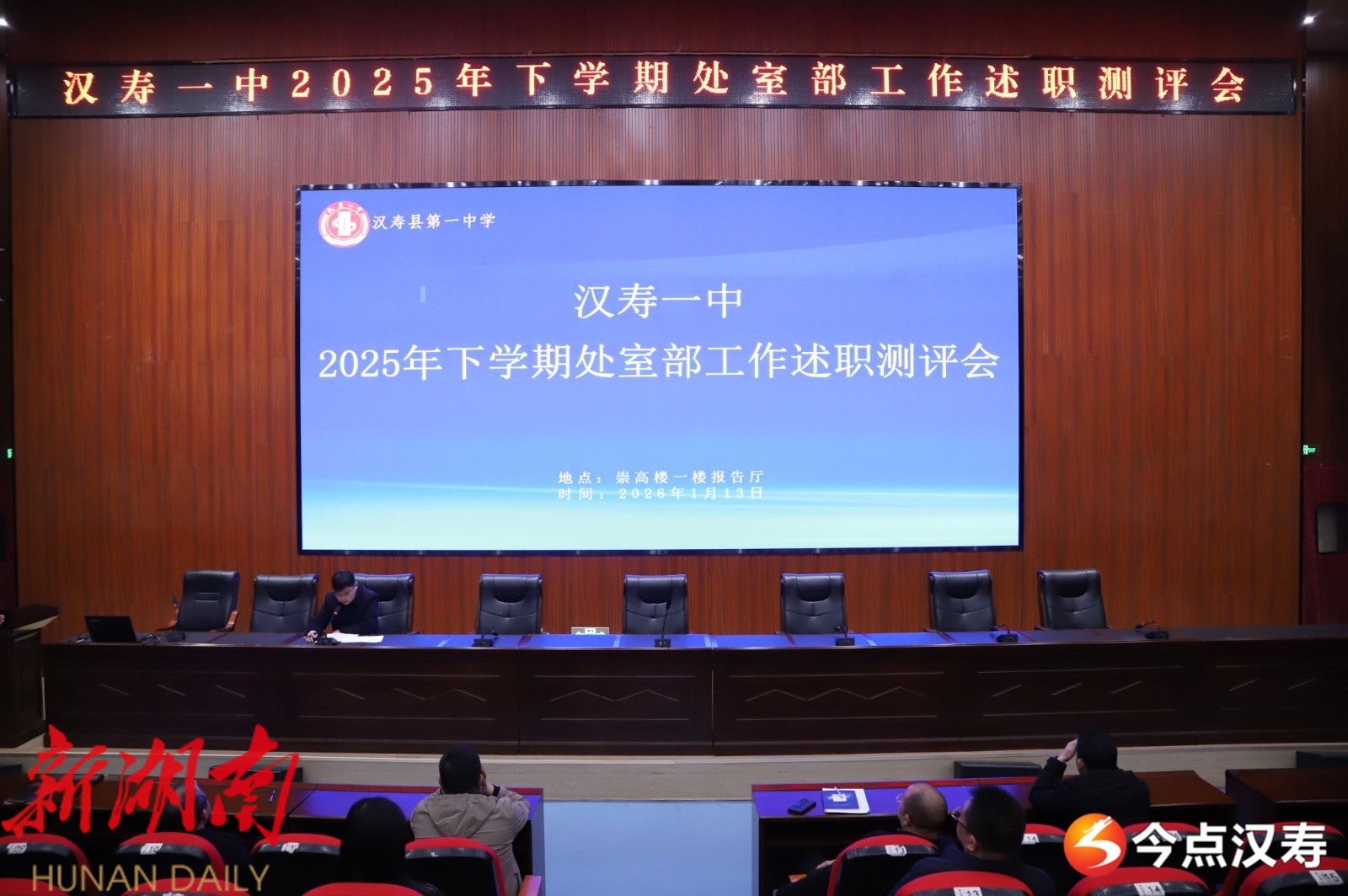 汉寿融媒1月14日讯(通讯员:陈雨欣)昨天晚上,汉寿一中召开2025年下学期处室部述职测评会;学校处室部负责人分别就本期工作进行公开述职,并接受现场测评。