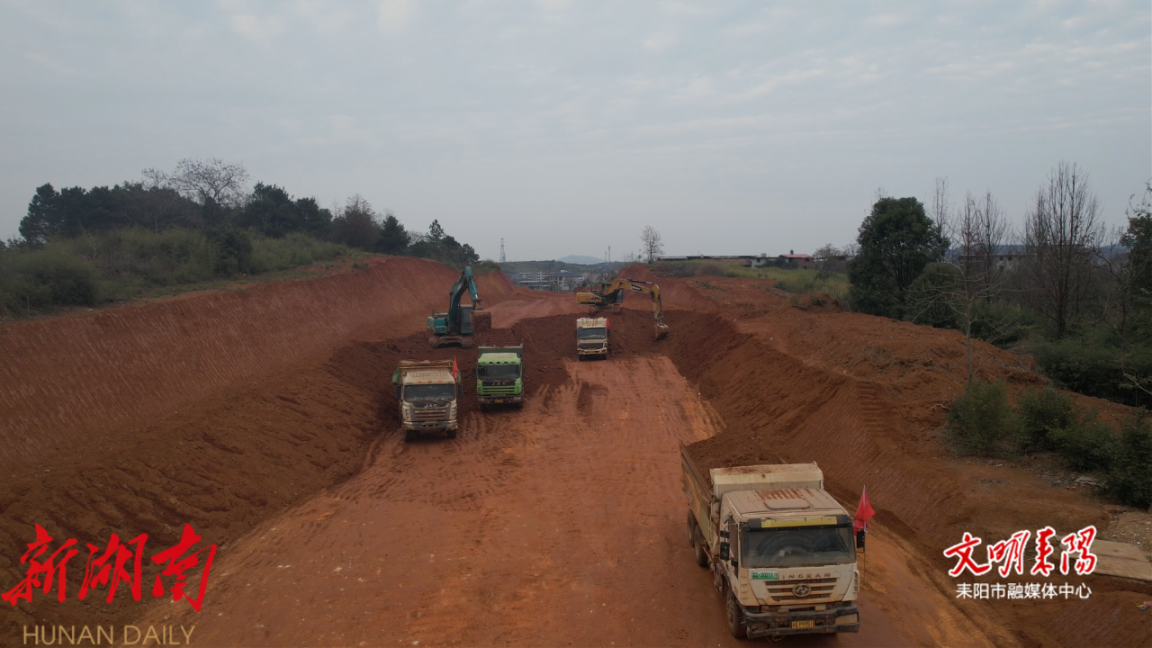 耒阳融媒1月12日讯(记者 梁梓坤) 连日来,竹市至大市循环经济产业园公路项目施工现场机械轰鸣,挖掘机、推土机、运输车辆密切配合,多点位同步作业,施工人员抢抓晴好天气,全力推进工程建设,项目整体进入加速冲刺阶段。