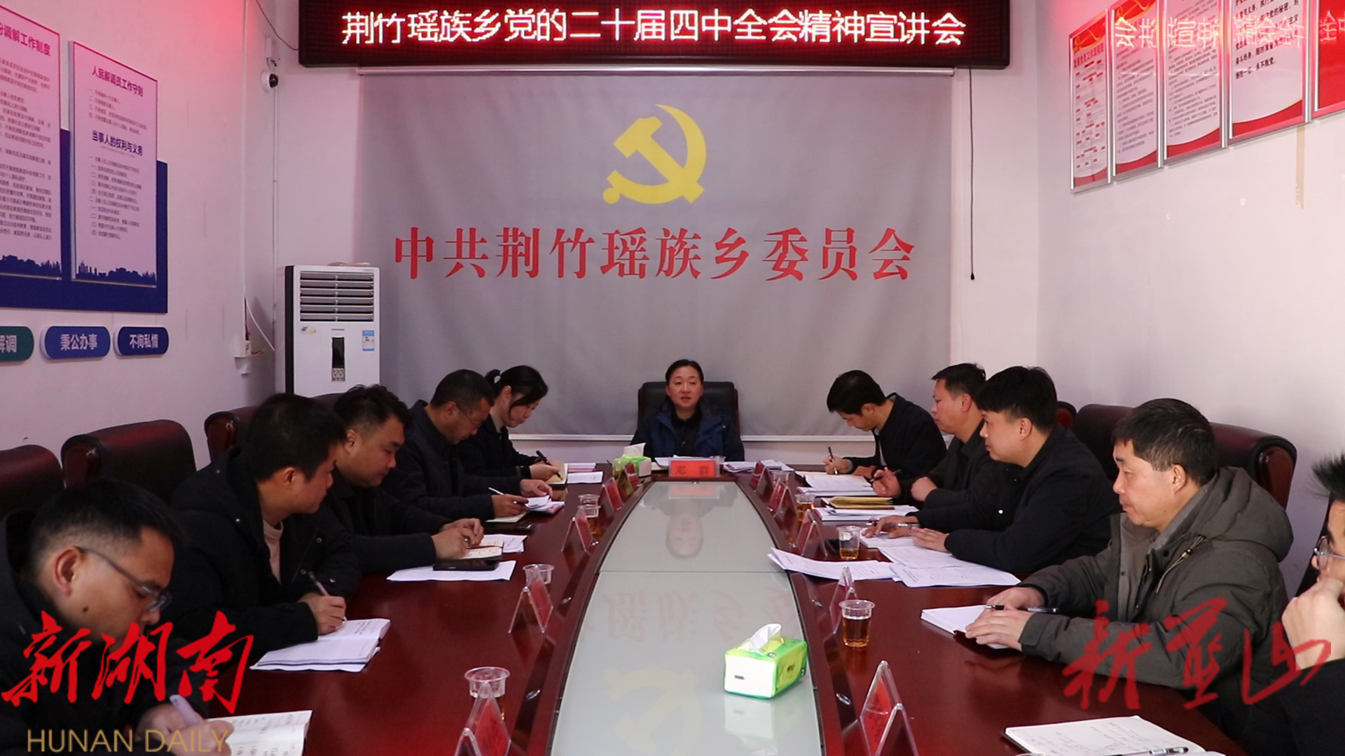 邓群强调,党的二十届四中全会是在即将进入基本实现社会主义现代化夯实基础、全面发力的关键时期召开的一次十分重要的会议。要提高政治站位、学深悟透,深刻领会把握“十五五”时期经济社会发展的指导思想、重大原则、主要目标、战略任务和重大举措等核心要义。要注重方式、讲究方法,持续掀起学习宣传贯彻全会精神的热潮,进一步创新宣传方式、用好宣传语言、提升宣讲成效,让宣讲过程成为汇集民智、凝聚共识、智力发展的过程,使全会精神在红色瑶乡落地有声、开花结果。要主动作为、担当实干,推动全会精神在乡镇落地生根,做到在党建引领上下功夫、在壮大特色产业上善作为、在推进乡村振兴上用真情、在守牢安全底线上出硬招、在提升治理能力上求实效,科学谋划今年工作思路和重点项目,为“十五五”时期荆竹瑶族乡高质量发展开好局、起好步奠定坚实基础。