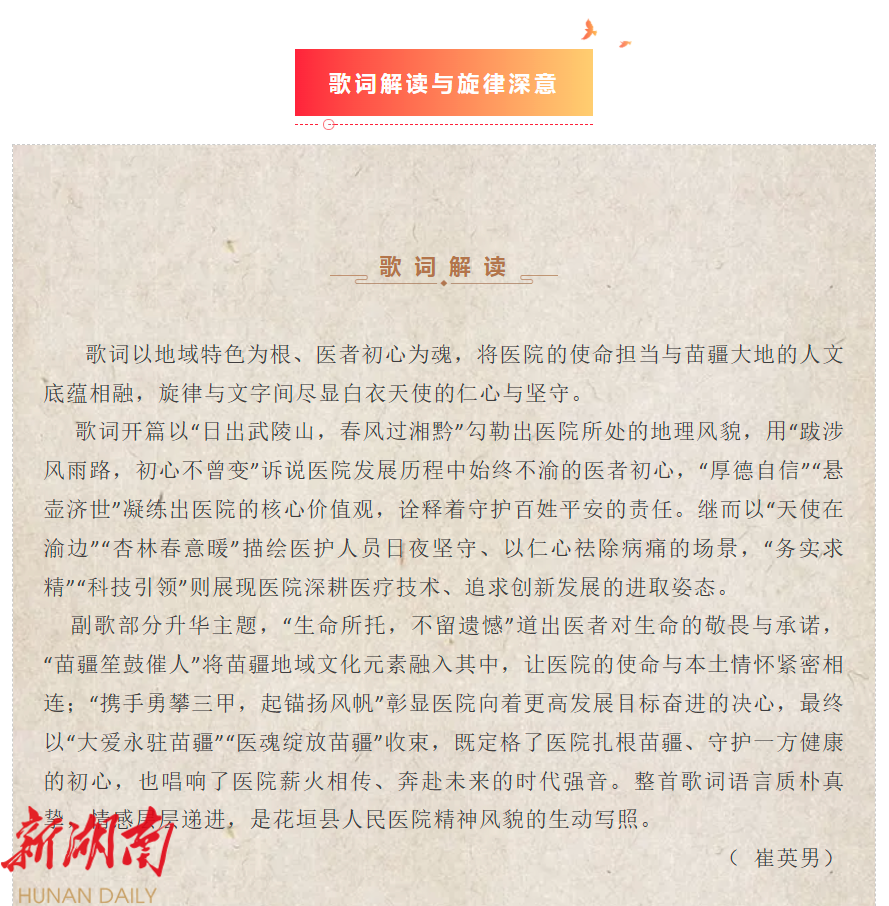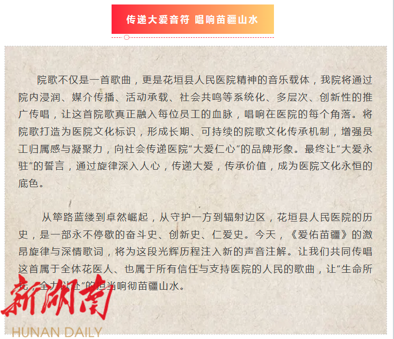 花垣县人民医院院歌《爱佑苗疆》新鲜出炉,以歌铭志唱响大爱担当