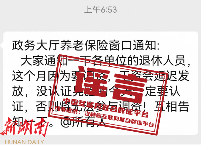 辟谣:官方回应“不认证无法参与调资,退休工资将延迟发放”等不实信息