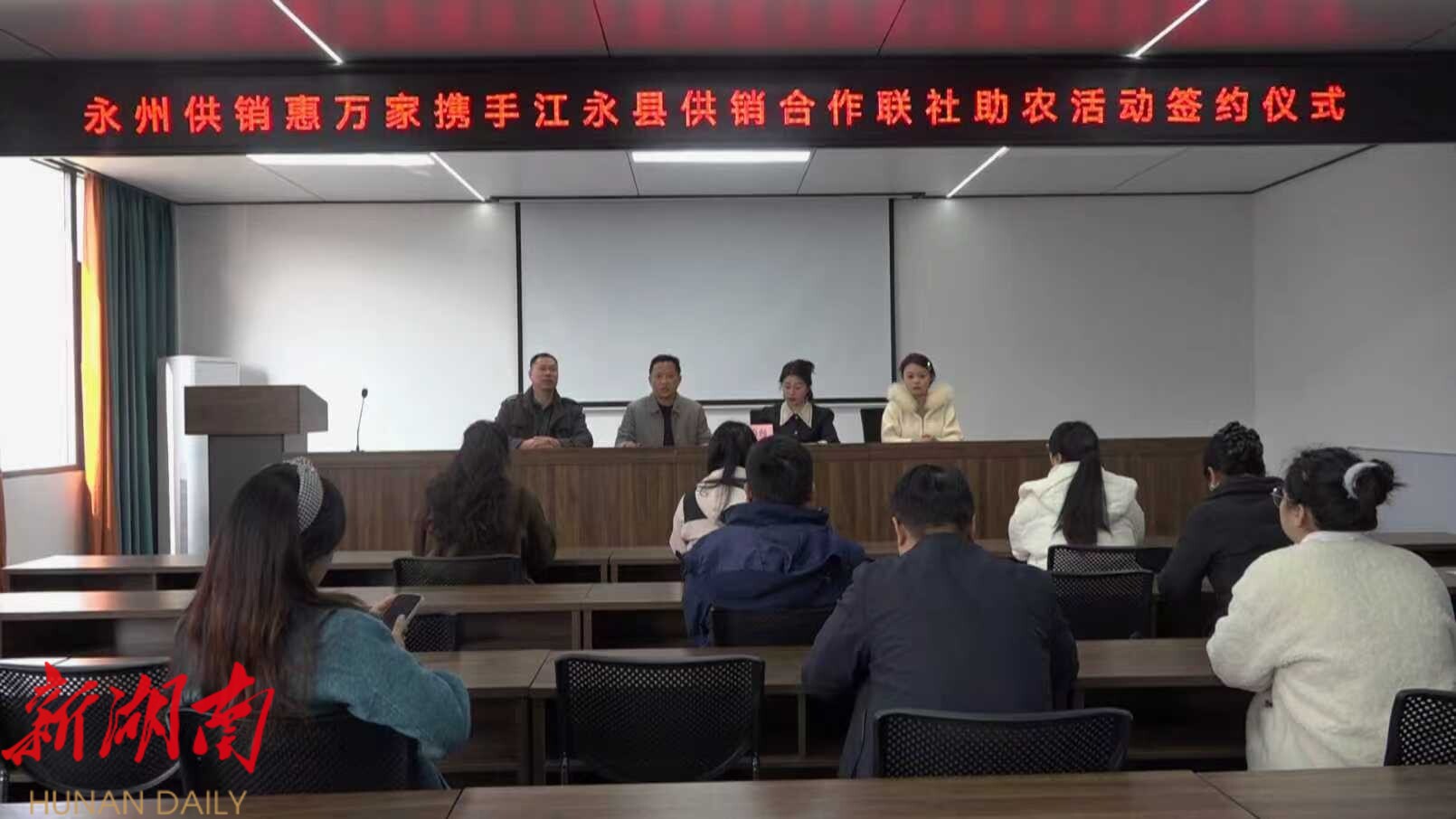 江永融媒1月15日讯(记者 欧阳文 通讯员 卢剑辉) 1月14日,江永县潇浦镇供销合作社暨江永瑞丰收水稻种植统防统治专业合作社与湖南省供销惠万家农业发展有限公司签订抖音店铺代运营合作协议,以“专业运营+直播带货”模式拓宽江永地标农产品销路。