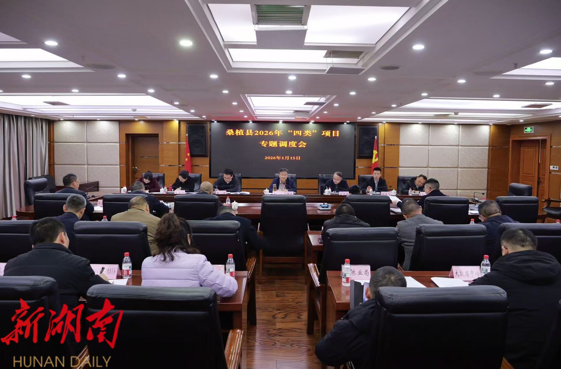 湖南日报·新湖南客户端(通讯员 杨柳)1月15日,县委书记 曹飞 主持召开桑植县2026年“四类”项目专题调度会,全面盘点项目储备情况,精准研判形势,为2026年全县经济社会高质量发展蓄势赋能。县委副书记、县长 梁高武 ,县领导 黎涛 、 钟德华 、 全洁琼 、 胡辉 、 唐妙玲 ,县政协二级调研员 佘平 参加。