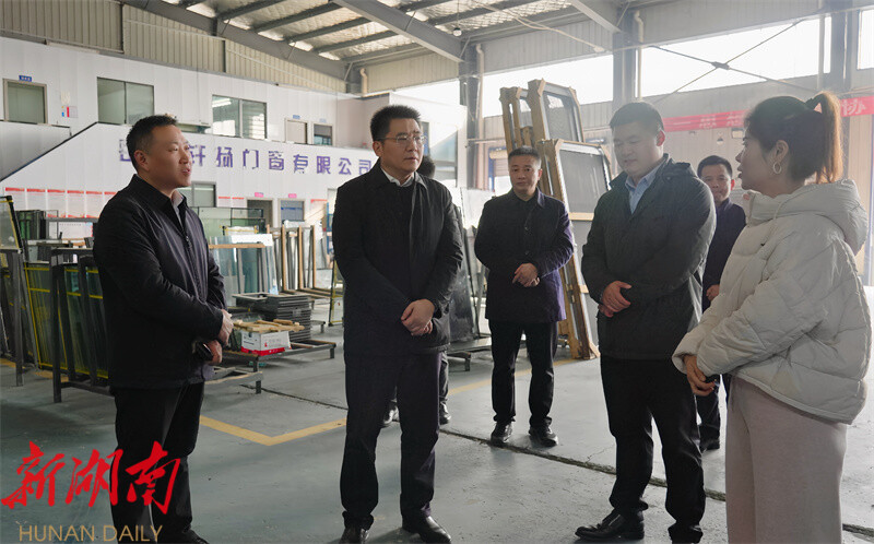 在新开镇岳阳轩扬门窗有限公司,肖湘晖认真察看生产运行情况,听取企业负责人关于返乡创业历程、经营状况及发展规划的汇报。该公司是专业的全景推拉窗研发生产企业,2024年通过海纳物流有限公司牵线配套,成功落户海纳物流园,实现返乡扎根发展。肖湘晖肯定企业反哺家乡、以电商赋能产业发展的做法,勉励企业加大研发投入、严控产品质量、拓展销售渠道,持续提升企业竞争力。