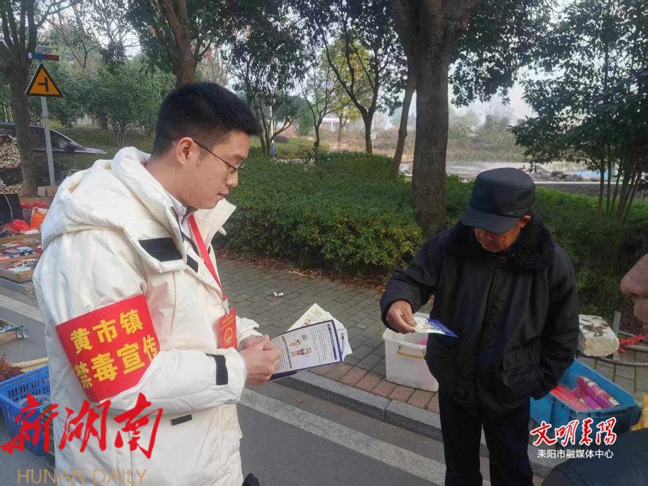 耒阳融媒1月14日讯(记者 匡经强 通讯员 陆元堃) “赶集日学禁毒知识,守好全家平安路!”1月14日,黄市镇借助赶集日人流密集的有利契机,在大河滩集市开展集中禁毒宣传活动,以通俗化讲解、互动式体验、生活化传播,为群众送上“禁毒防护指南”。