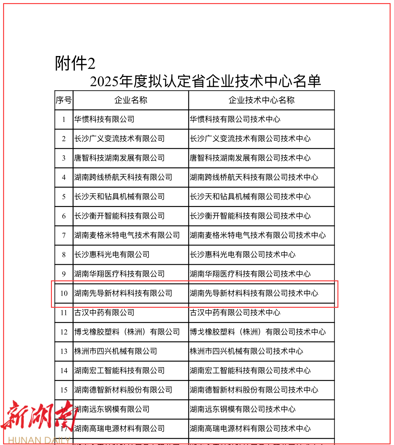 喜讯!湖南先导上榜2025年度湖南省企业技术中心名单