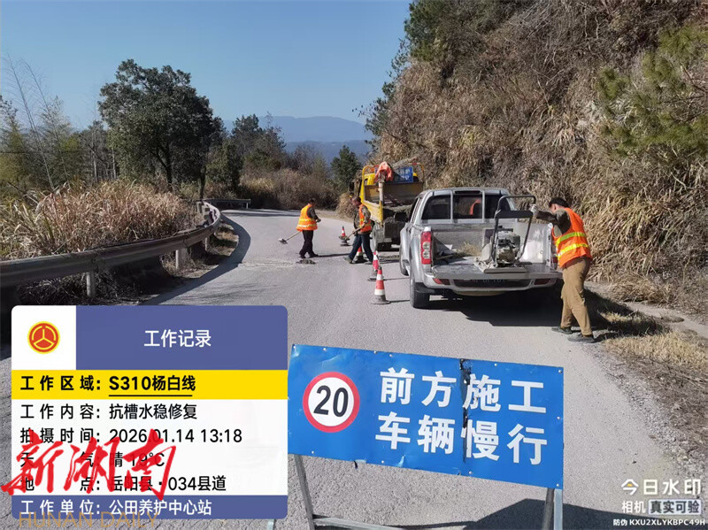 为从源头降低安全隐患,该中心提前开展路面病害集中整治行动,组织专业养护队伍对辖区国省干线及山区道路进行全面排查,重点梳理路面裂缝、坑槽、松散等早期病害,制定精准修复方案。截至目前,已处置坑槽等路面病害500平方米,投入锥形桶160个、标志牌100块、防滑材料40立方米,为应对低温冰冻天气奠定了坚实基础。