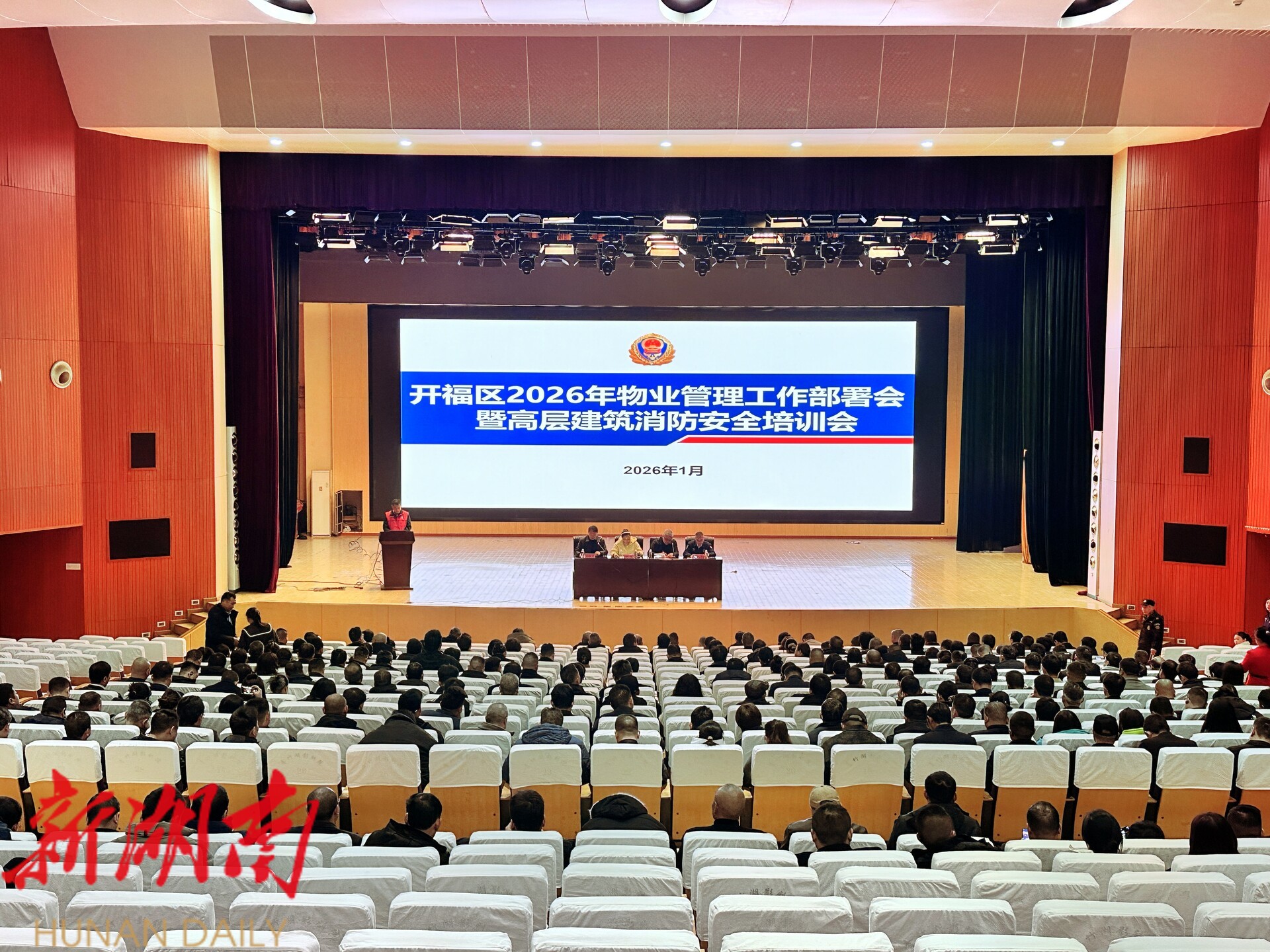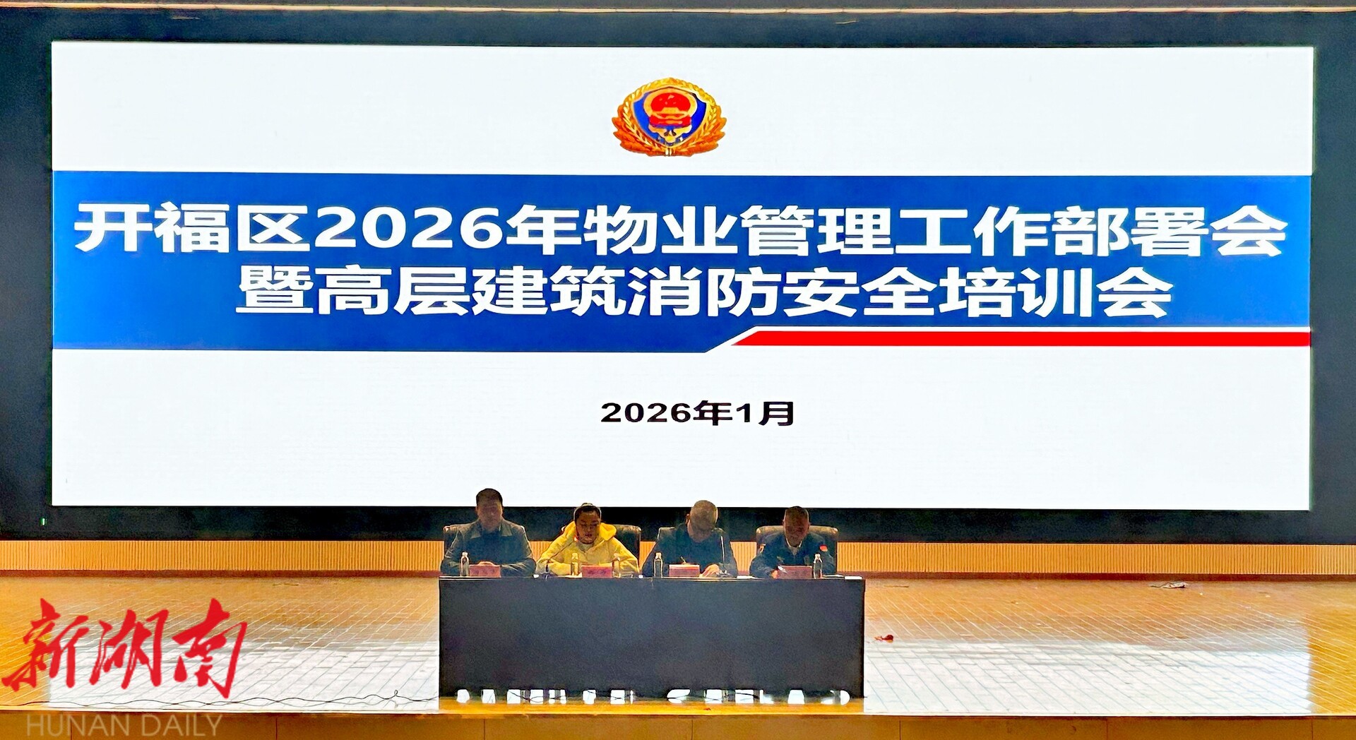 湖南日报·新湖南客户端1月16日讯(通讯员 唐德虎)新年伊始,万象更新,为贯彻落实开福区人民政府关于2026年物业管理工作的部署要求,切实提升全区高层建筑消防安全水平,1月16日开福区住房和城乡建设局联合区委社会工作部、区消防救援大队在区委党校大礼堂召开全区物业管理工作部署会暨高层建筑消防安全培训会。此次会议凝聚企业共识、明确工作方向、强化安全技能,为全年物业管理工作开好局、起好步奠定坚实基础。