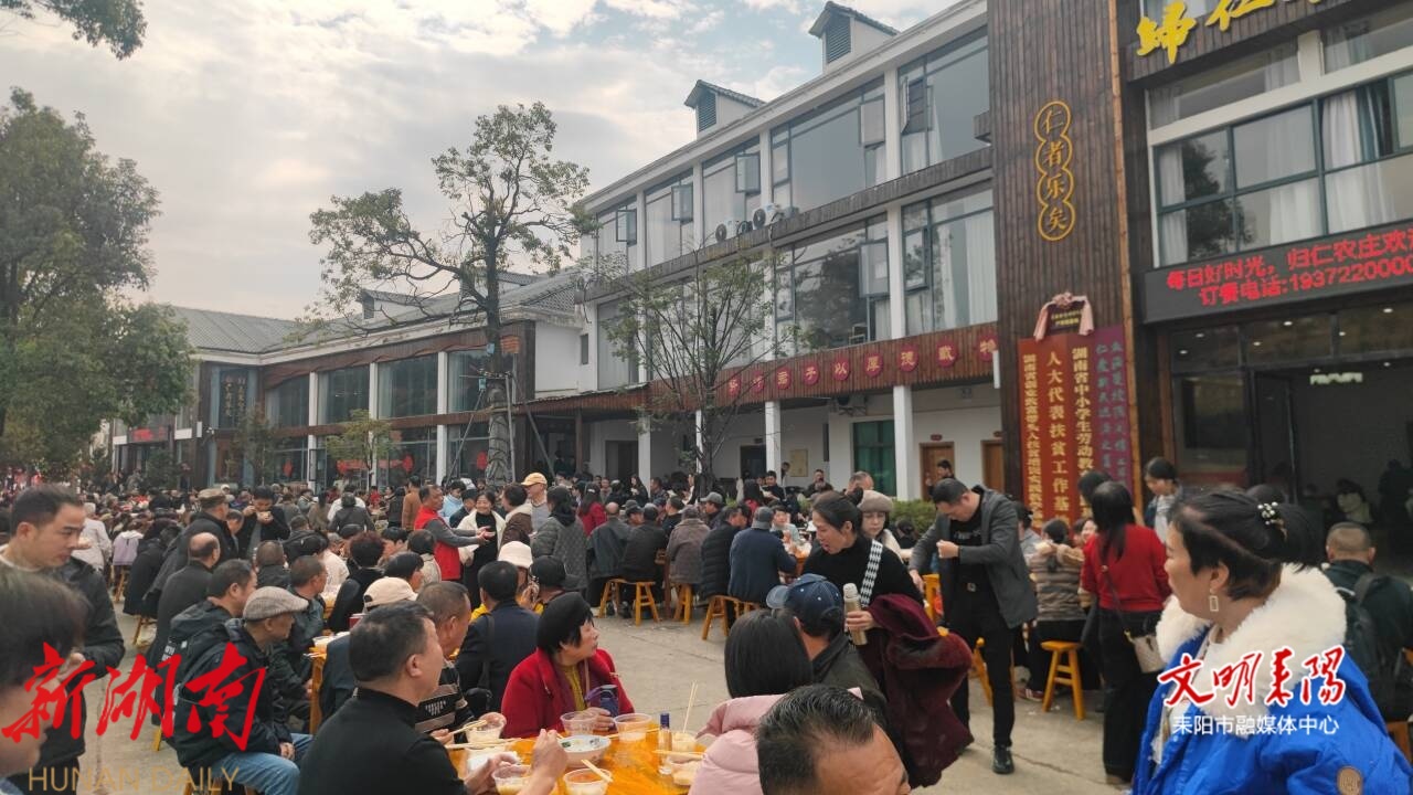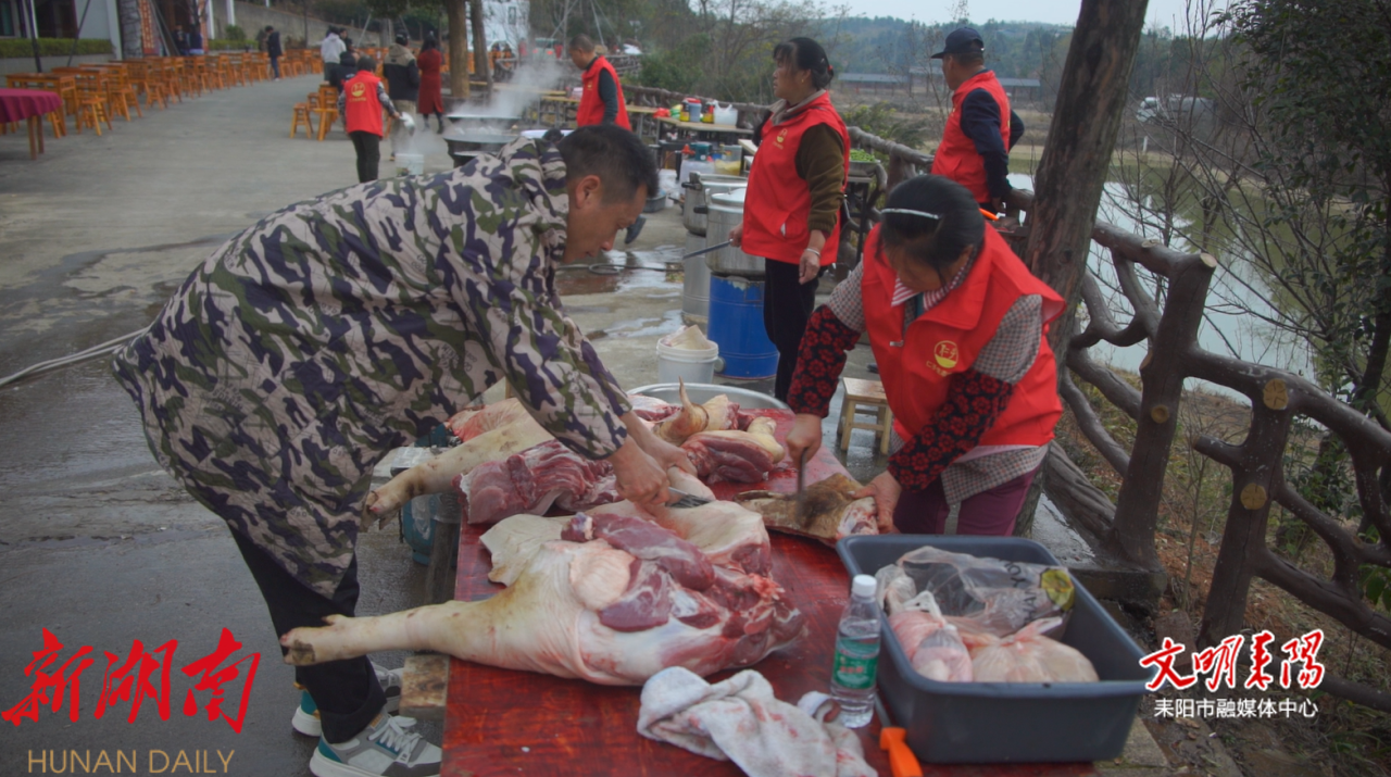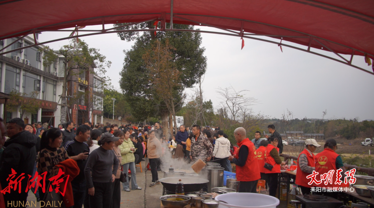 “杀猪宴”是中国乡村的节庆传统。杀年猪历来承载着丰收的喜悦与邻里的温情。旧时耒阳便有“杀肥猪、做年肉”的习俗,杀猪后不仅要宴请亲友,更会将猪血、猪肉分赠邻里“散福”,如今这一传统升级为规模化民俗活动,既完整保留了祭祀祈福、分享美味的核心内涵,更以千人同席的热闹形式,让这份沉淀已久的乡土年味得以延续和传递。