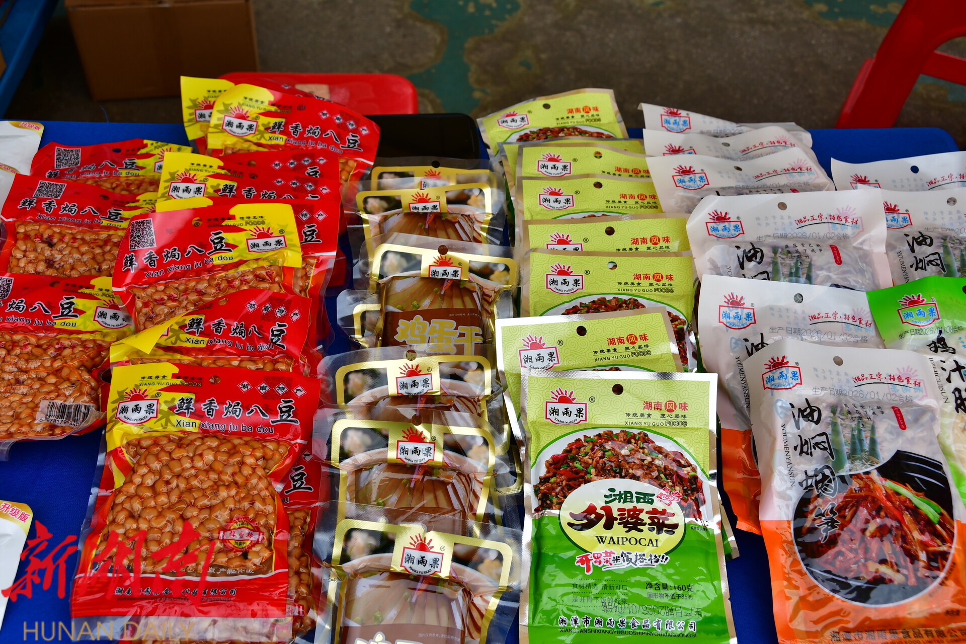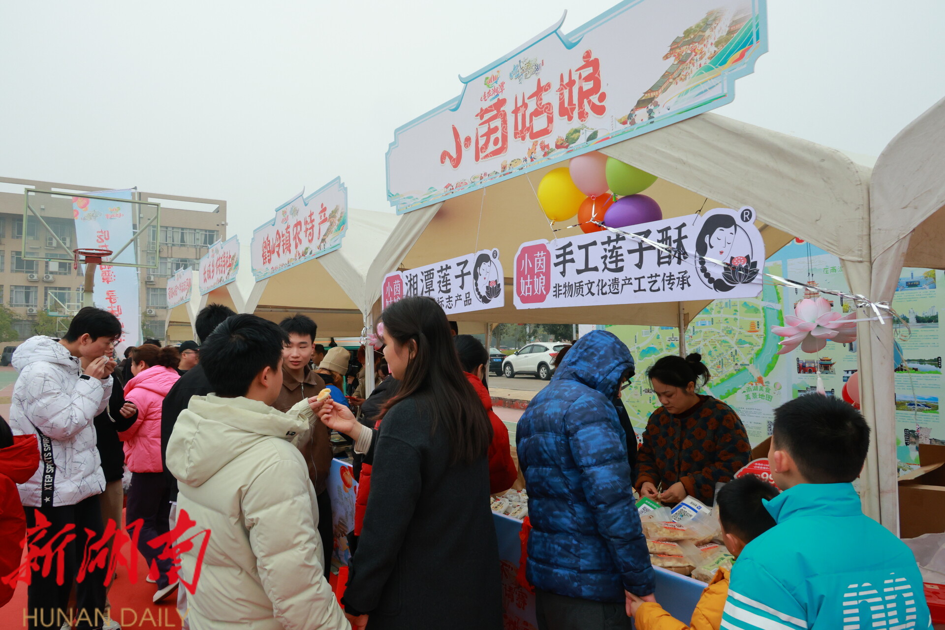 集市现场,各类摊位井然有序,人头攒动。餐饮美食区,地道的梅菜扣肉香气四溢,脑髓卷等肉制品等本土美食让人目不暇接。年货特产区则汇聚了各类农副产品和精选年货,满足市民一站式购齐的需求。尤为引人注目的是非遗展示区,非遗传承人现场展示技艺,让市民在购物的同时,近距离感受雨湖深厚的文化底蕴。