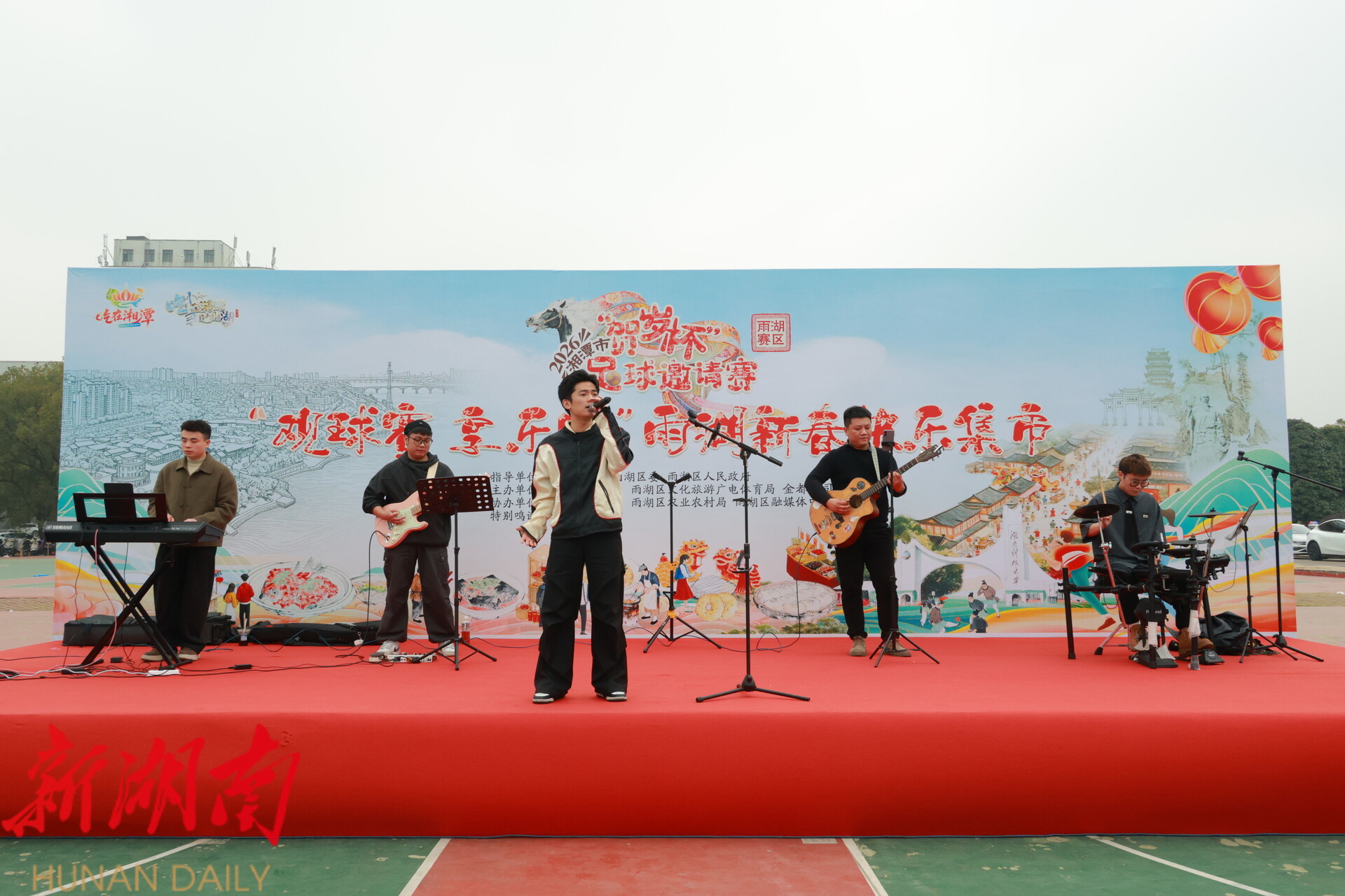 雨湖融媒1月18日讯 (记者 肖泽全 陈娟 姜俊 朱文捷 赵栋 ) 1月18日下午,伴随着2026年湘潭市“贺岁杯”足球邀请赛雨湖赛区揭幕战的激情开赛,一场精心策划的“雨湖新春快乐集市”在湖南科技大学第一田径场外同步火热开市。这不仅是简单的年货赶集,更是雨湖区贯彻落实省市促消费部署、创新实践“体育搭台、经济唱戏”的一次生动亮相,让千年雨湖的商贸活力与文化魅力在升腾的烟火气中集中绽放。