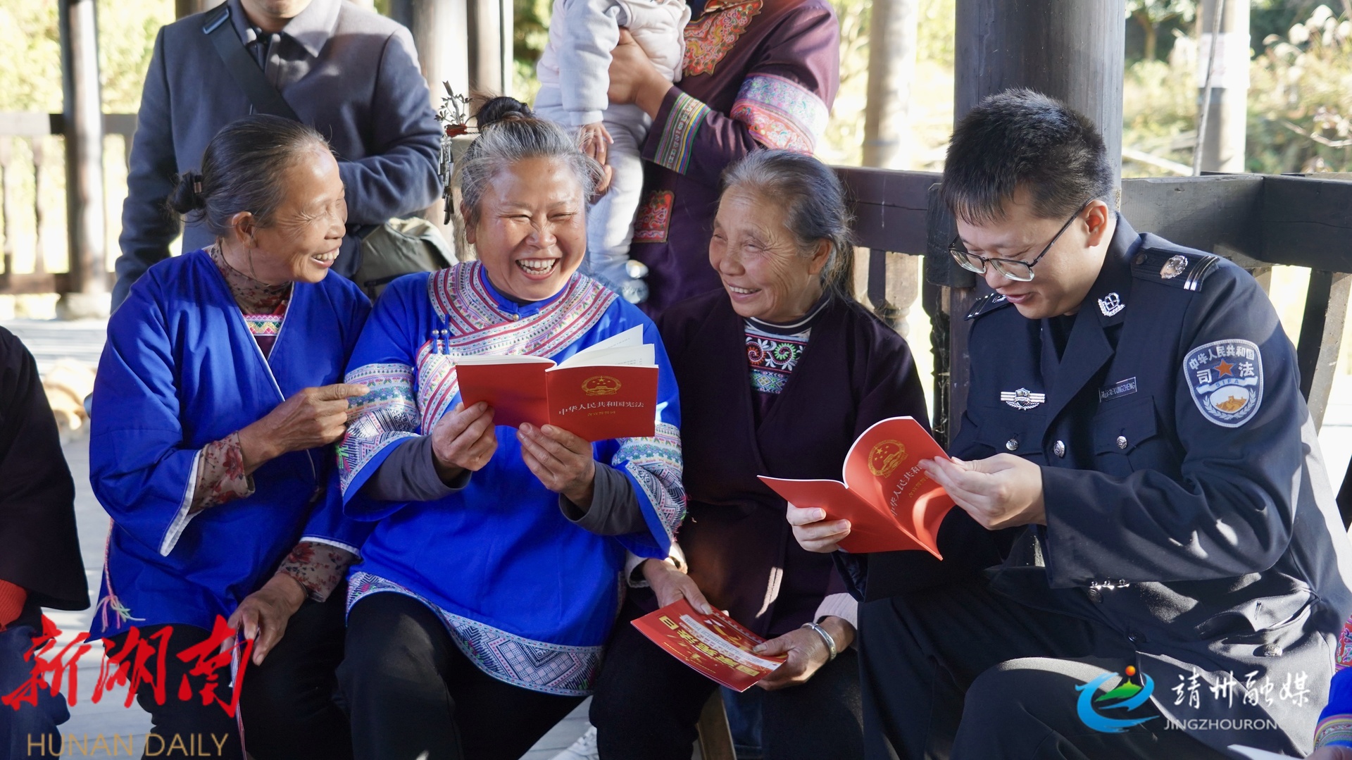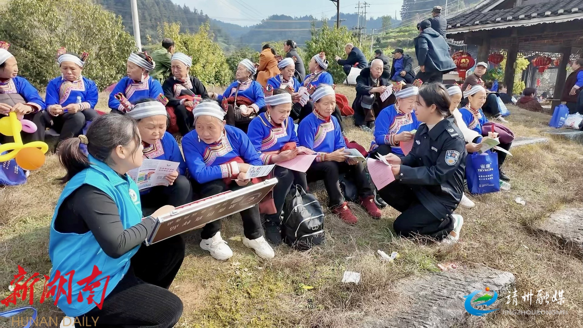 在普法工作中,靖州创新路径,将普法宣传与本地非遗特色深度融合,推动法治观念浸润人心。目前,全县134个村(社区)已实现法律顾问全覆盖,828名“法律明白人”奔走在田间地头、街头巷尾,通过“廊亭议法”“平安大走访大宣传”等特色活动,围绕扫黑除恶、防范电信诈骗、禁毒等重点内容精准送法上门。