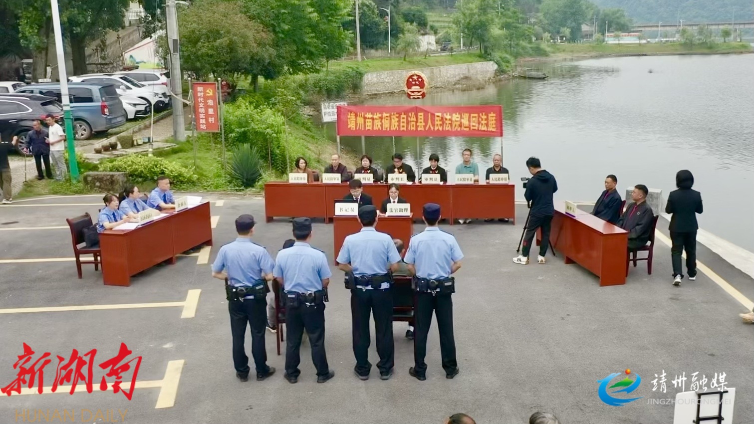 为打通司法服务“最后一公里”,靖州人民法院推进巡回法庭建设,将庭审直接搬到群众家门口。在渠阳镇泡里村一起非法捕捞水产品公益诉讼案中,法官依法审理,判令被告人承担刑罚的同时,履行增殖放流、义务巡河等生态修复责任。这种“家门口的法庭”模式,既高效惩治了违法犯罪、修复了生态环境,更实现了“审理一案、教育一片”的普法效果。