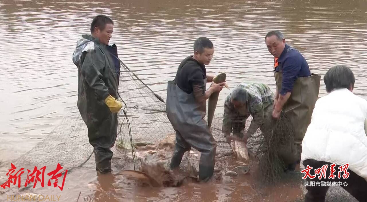 耒阳融媒1月18日讯(记者 杨明涛 蒋境 钟菲) 近日,大和圩乡五和村四组的鱼塘里,随着养殖户手中的渔网缓缓收紧,一条条鳞光闪闪、膘肥体壮的草鱼在网中簇拥翻腾,溅起大片浪花,引来了围观村民的欢呼声,更开启了这个冬日里最为鲜活的丰收序曲。