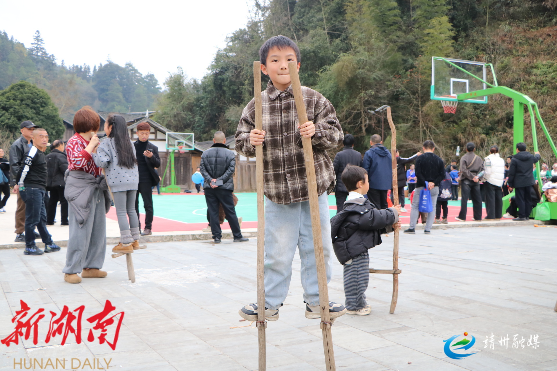 苗年趣味活动 踩高跷(夏源懋 摄)