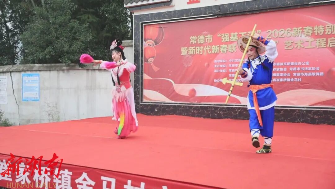 汉寿融媒1月19日讯(记者:童忠平)1月18日上午,常德市“强基工程”2026新春特别行动暨新时代新春联“百千万”艺术工程在汉寿县崔家桥镇金马村启动。