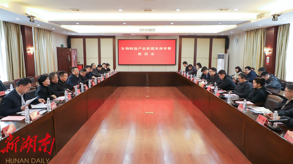 座谈会上,与会人员共同观看了津市创新发展纪实宣传片《院士点津》;市高新区管委会主任刘敏介绍了津市生物制造产业发展情况。双方围绕项目合作、产学研协同创新等内容展开深入交流。